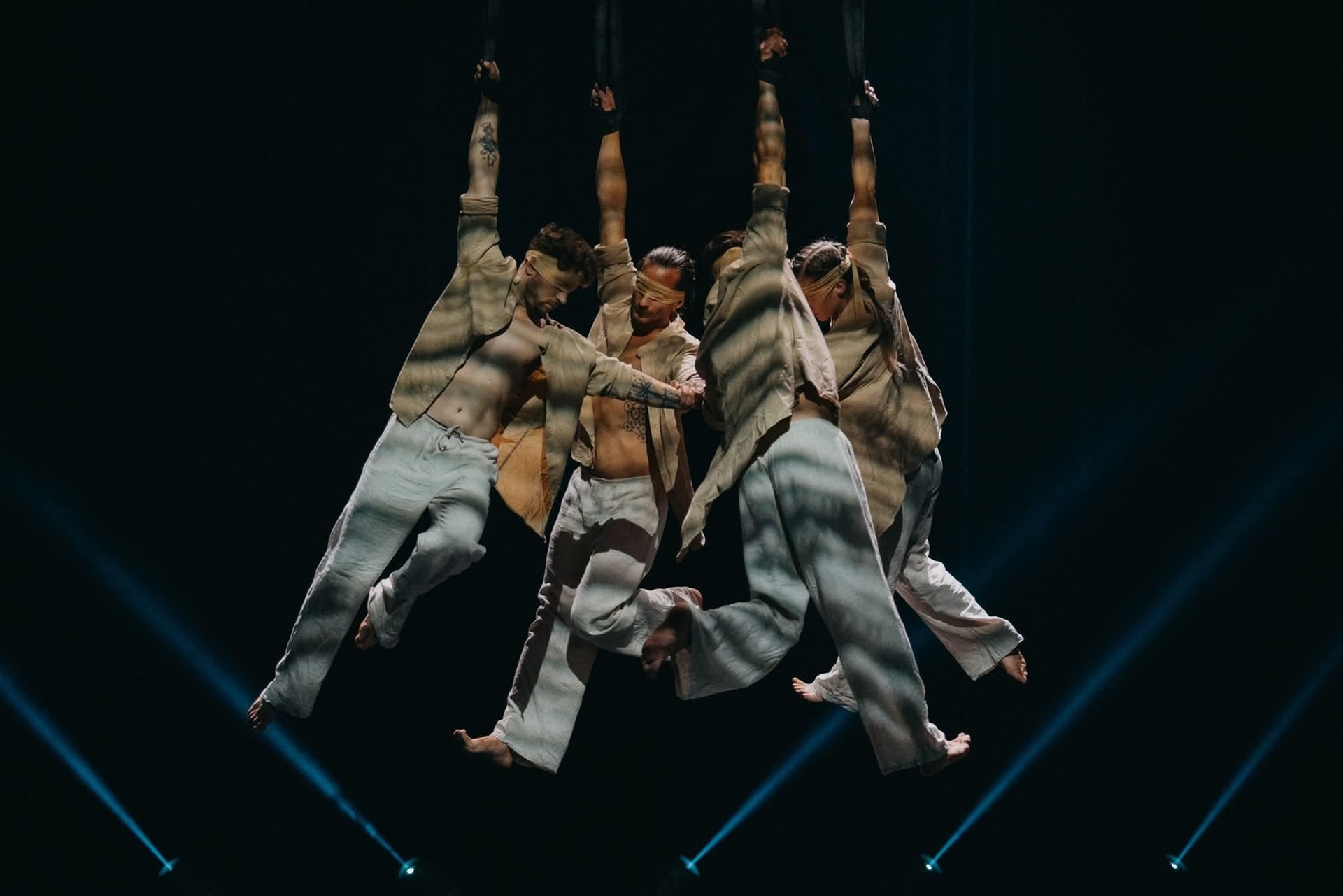 Atmospheeic group aerial act build around mutual feeling and communication via aerial prop Available various act lenghts Music can be performed live
