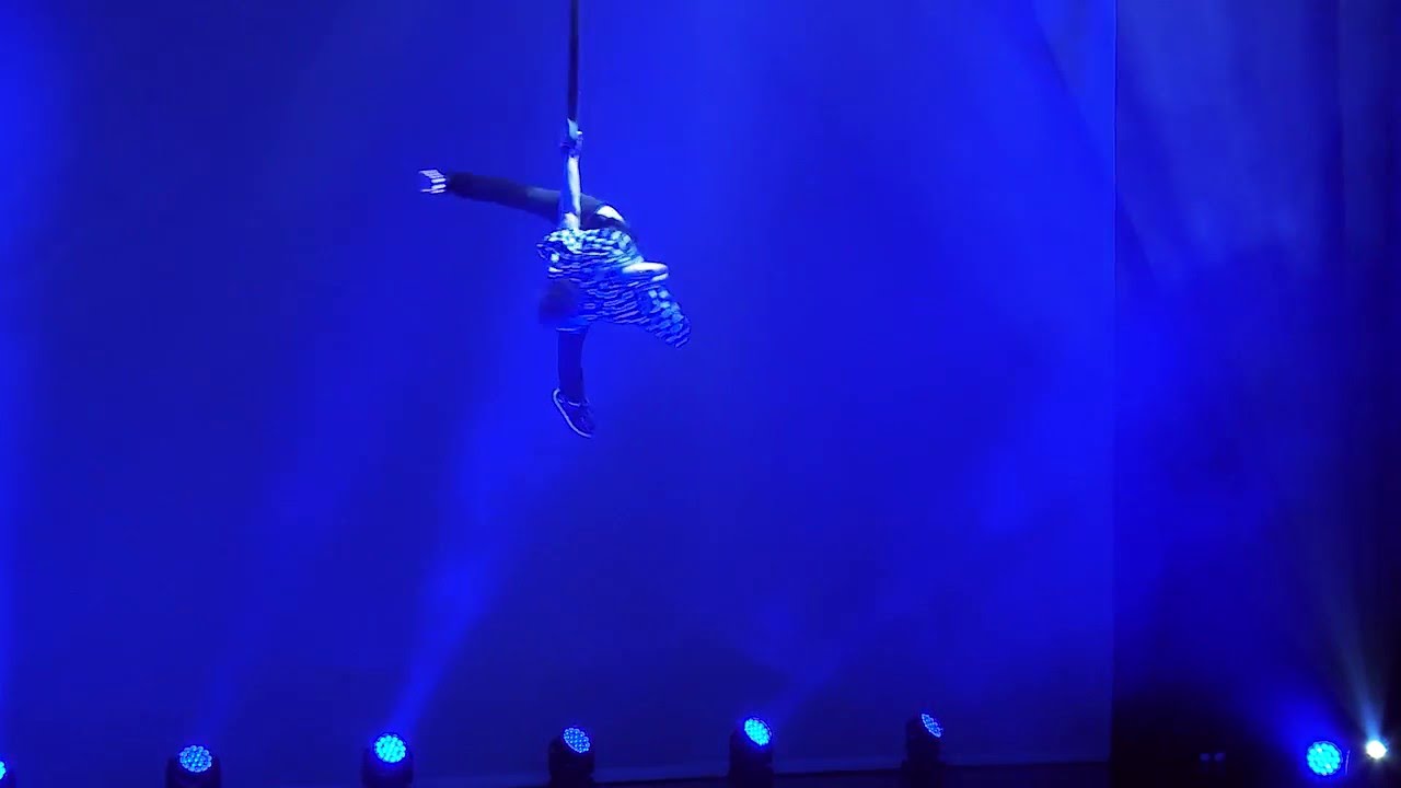 Lit up is an aerial straps act where the performer uses lights to bring the audience in a playful world full of illusions and wonder.