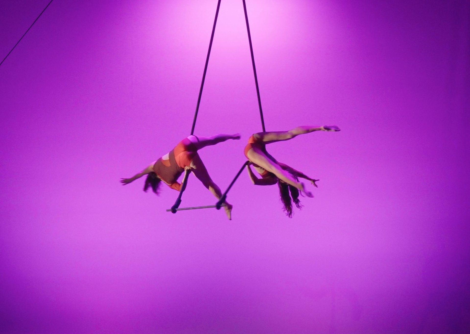Two women, one trapeze, and a constant dialogue between strength and fragility, between risk and harmony. A duo that is more than the sum of two individualities: it is an organism that breathes in unison, that exists because the other exists.