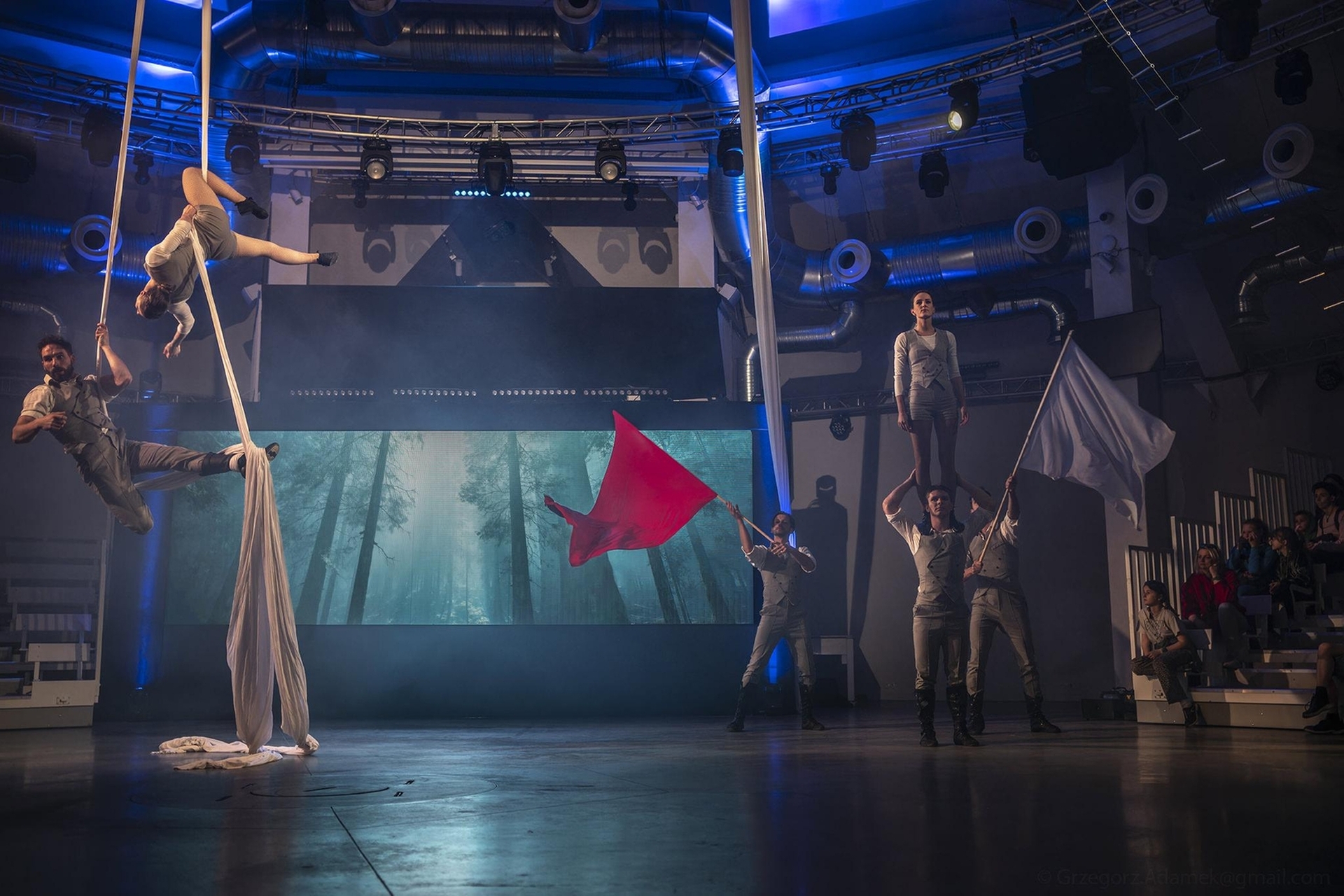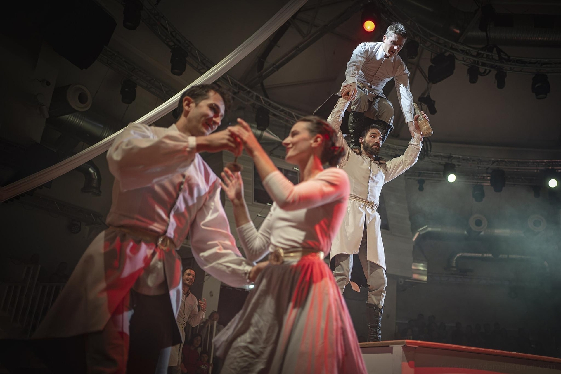 The performance takes viewers on an extraordinary journey through time, exploring key events in Polish history. Using the language of the circus, the artists create a story about the birth and development of the state, from its mythical beginnings to the present day.