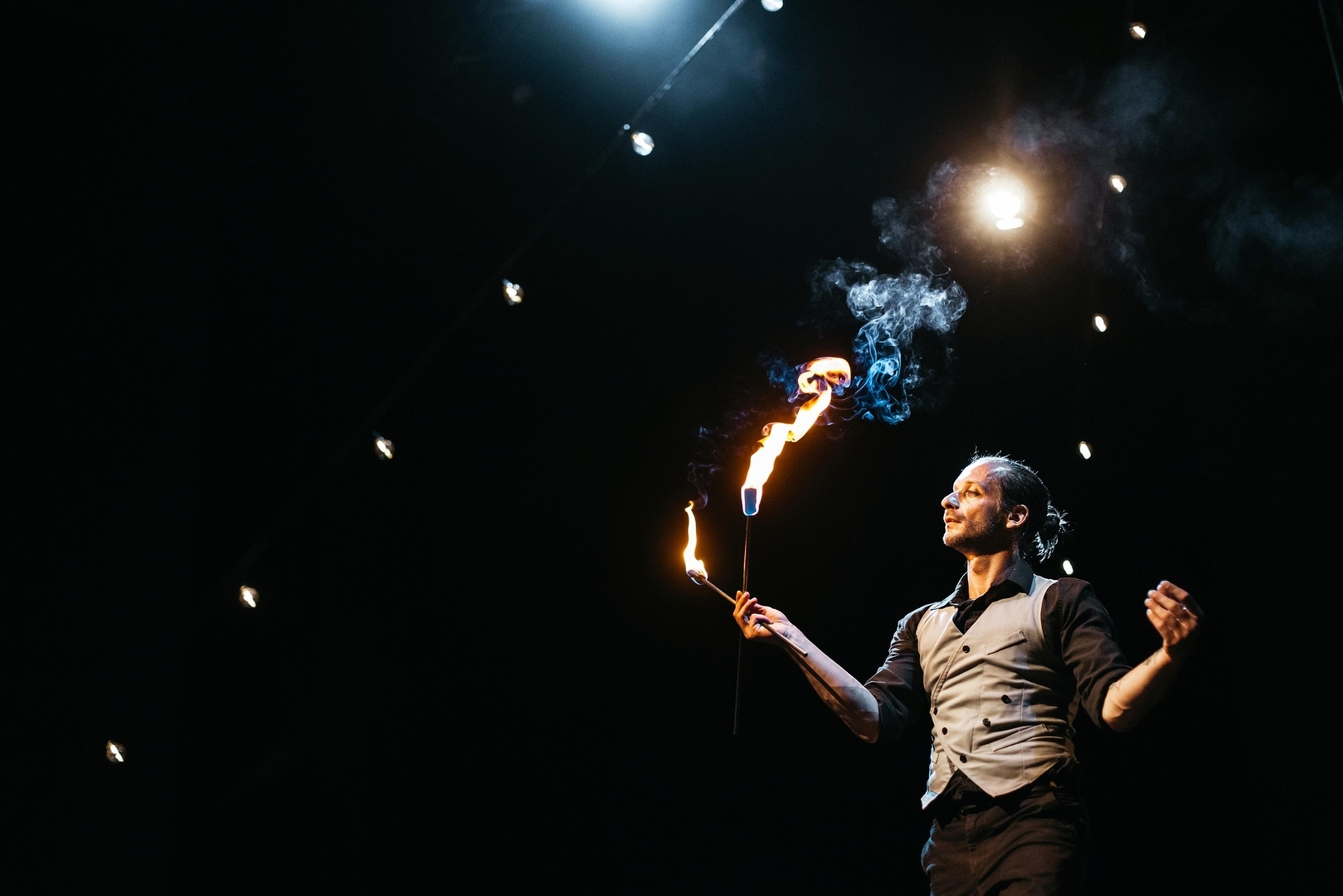 evening transforms into a circus feast full of acrobatics, juggling, and unpretentious humor.