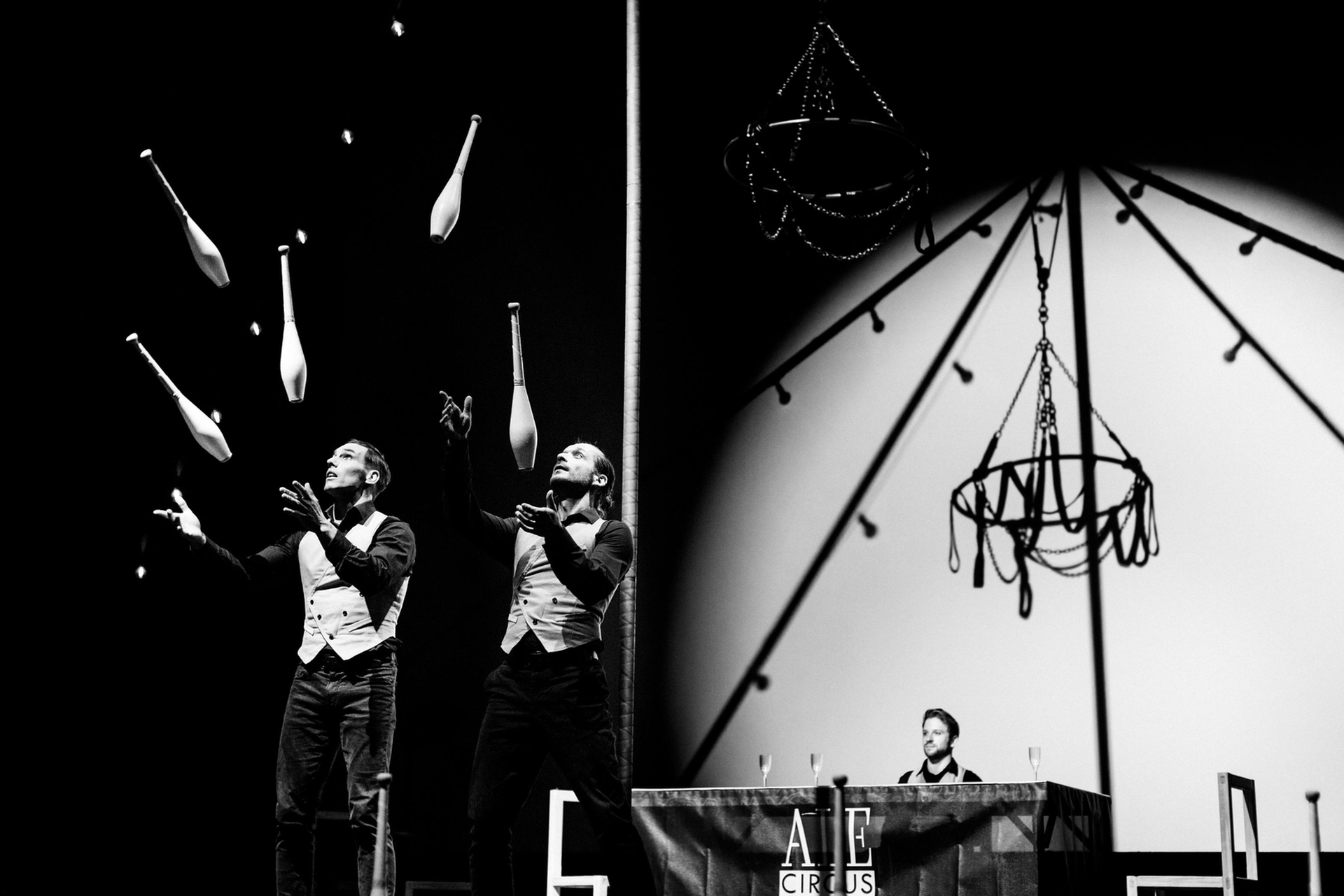 nonchalance, and juggling becomes not only a display but also a vehicle for grace. The table