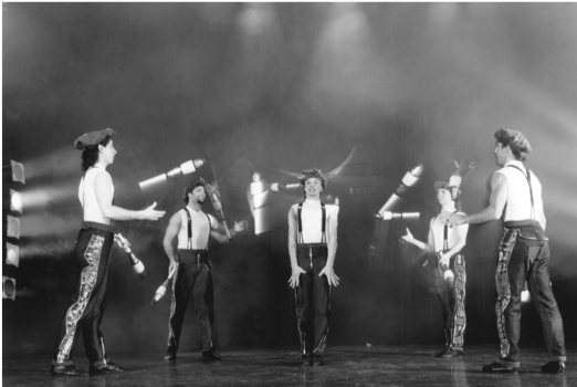 It was Cirque Éloize’s first showcase at IPAY (International Performing Arts for Youth) in Philadelphia, PA, USA. Brian Joyce, one of the presenters from Philly, saw the rehearsal the year before and invited them. There were 300 presenters in the audience, and they received a standing ovation after the showcase, booking 125 shows from that one event. That began their reputation as a circus company. That same year, Julie Hamelin, now considered a co-founder, came on board and eventually became a partner of the company.