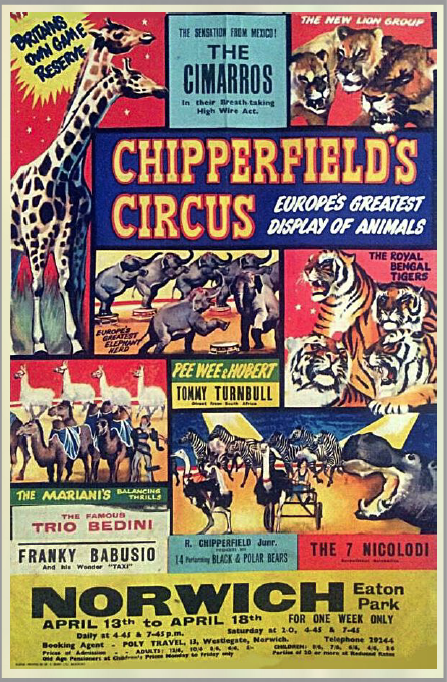 The end of the 1960’s saw Bertram Mills Circus close and Chipperfield’s embark on a tour of South Africa. Though they continued to produce shows for television well into the 1980’s, Smart’s folded up their big top for the last time on Clapham Common in the winter of 1971 — The Big 3 were no more.
