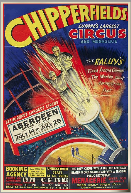 Chipperfield’s, on the other hand, took a more raw approach and specialised in a great number of animal acts in their shows, with the posters proclaiming the show as ‘Britain’s Own Game Reserve,’ ‘Europe’s Greatest Display of Animals’ or simply as ‘Chipperfield’s Animal Circus.’ (See images 18-19).