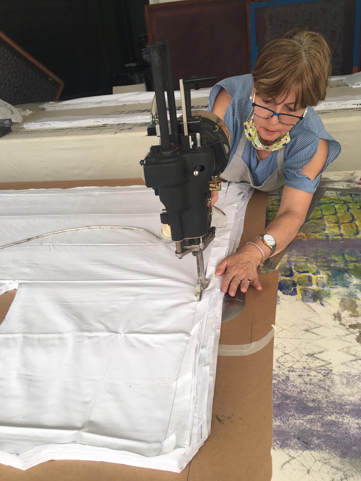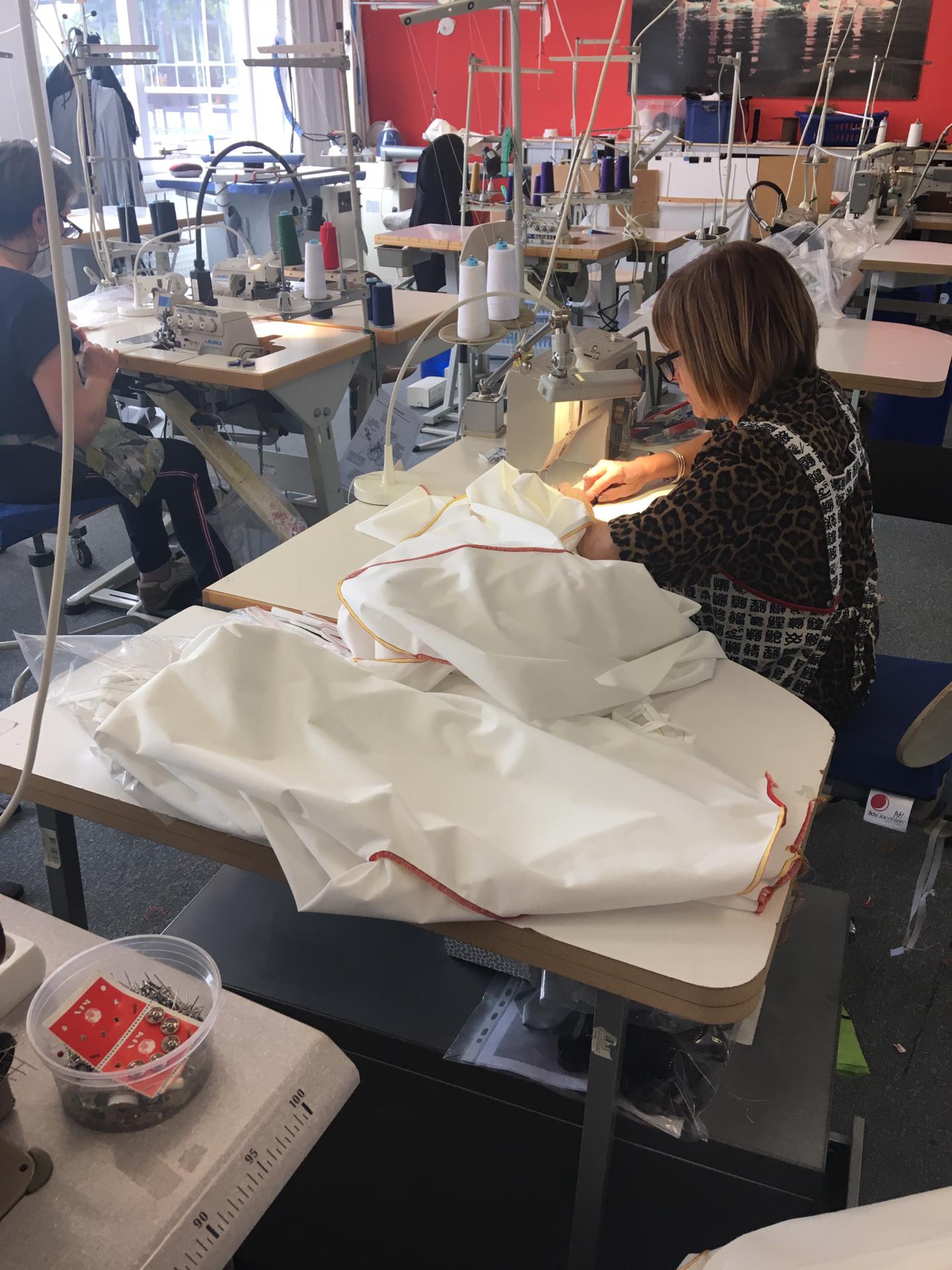 Claudine Cornet: From the start of the pandemic, it became apparent that due to the closure of shows, theatres, local measures for health and safety as well as suspension of upcoming projects that our staff would be without immediate work. We therefore offered to join the collective effort. To date, eight seamstresses, among the finest technicians in the workshop, and a cutter, have accepted the challenge.