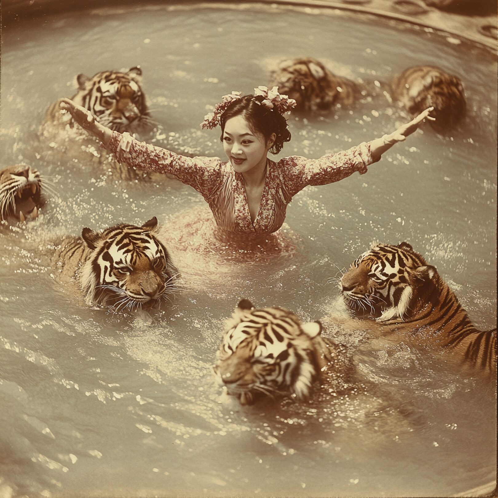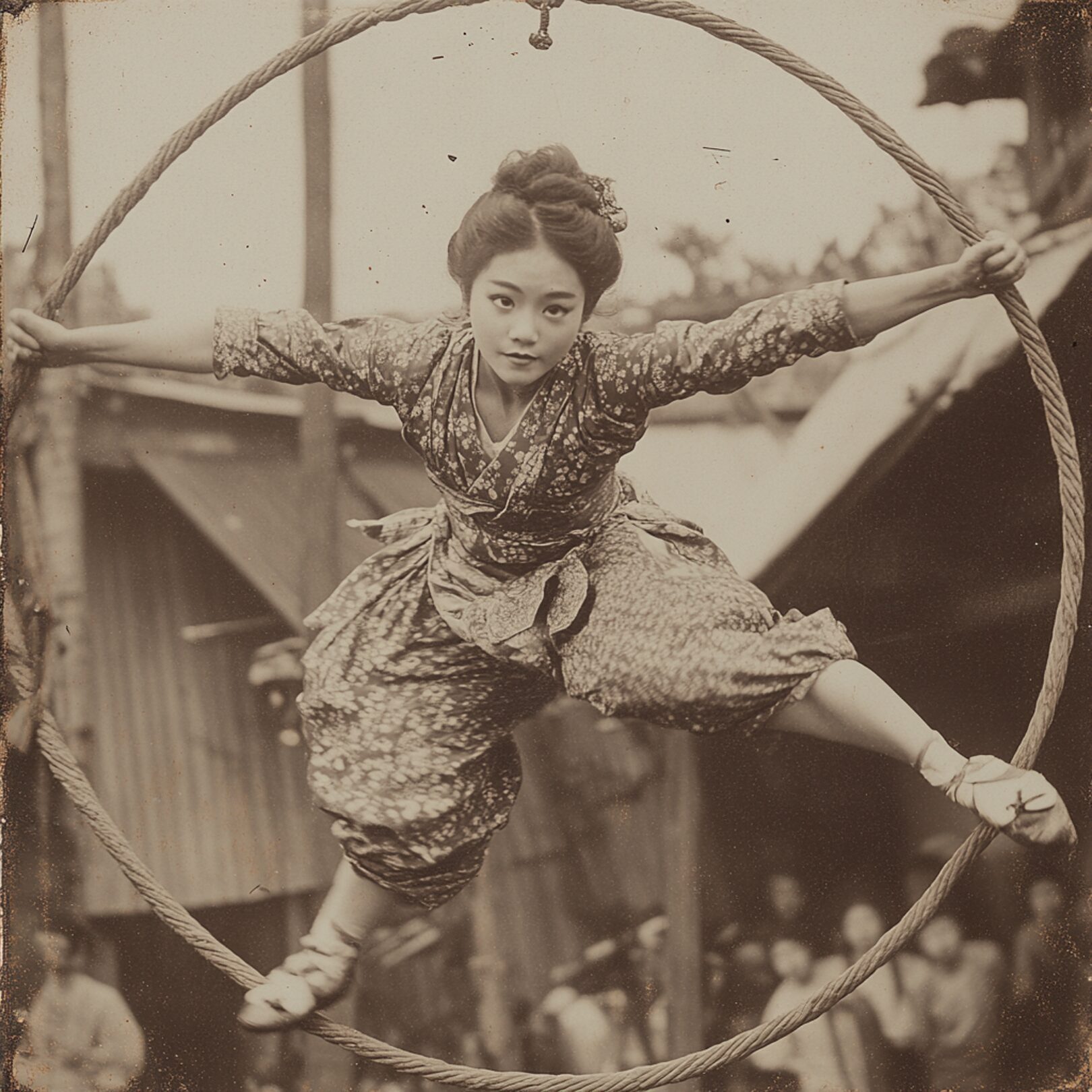 Historian and writer Raffaele De Ritis took a different approach, using AI to reimagine and fabricate historical narratives in circus. He shared the fictional story of a Japanese aerialist, completely generated using AI-powered research, text generation, and image creation. The story was accompanied by “historical” photographs and posters, all of which were AI-generated to mimic early 1900s circus imagery.