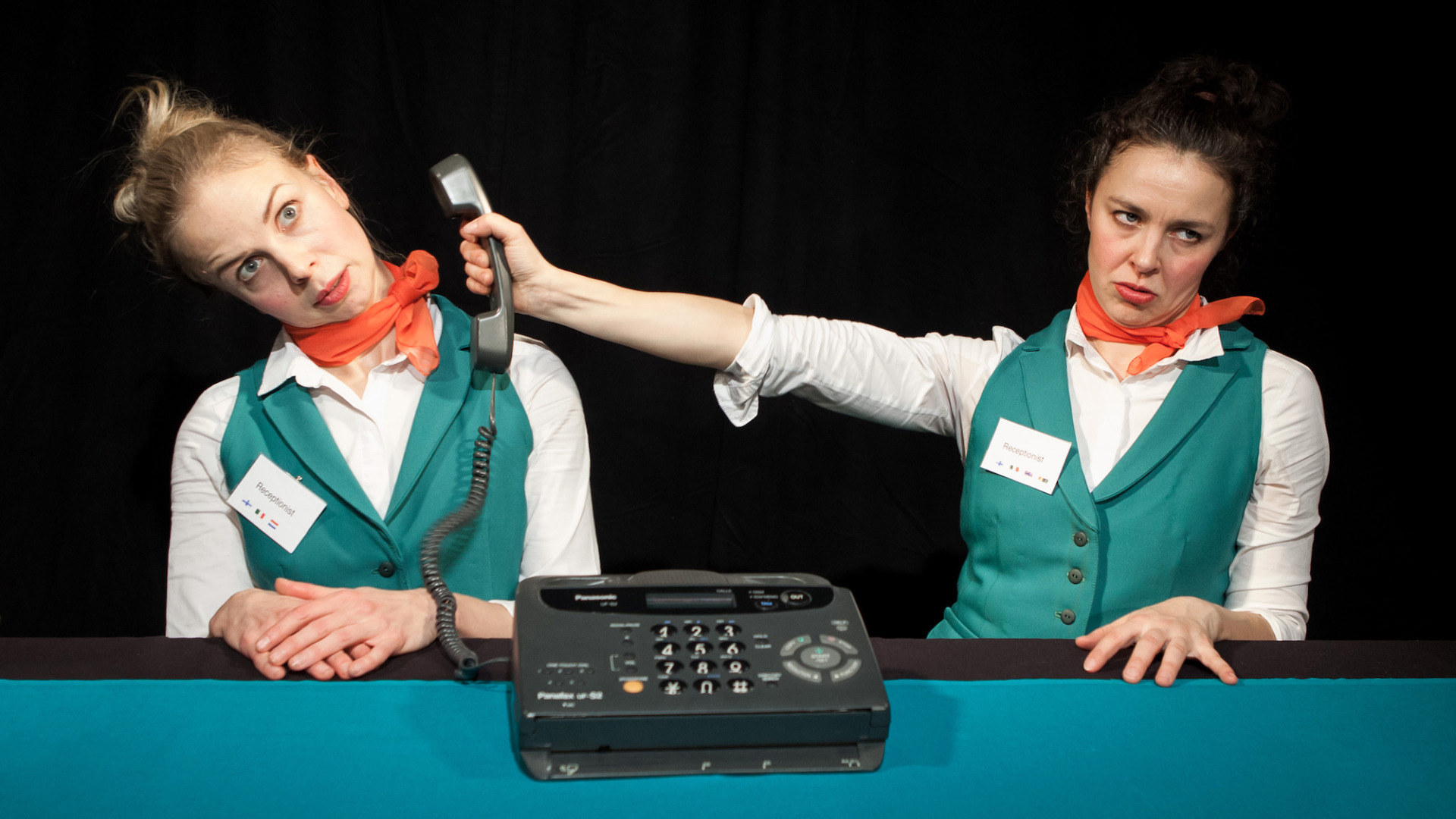 In The Receptionists, customer service becomes a physical comedy show. The two receptionists are two Finnish clowns who move smoothly through the hospitality industry. They speak fast and in several languages that no one understands. Incredibly silly and uniquely charismatic, Inga and Kristiina turn this whole affair into a delightfully absurd experience with hilarious chemistry, skilful smiles, and clever acrobatics.