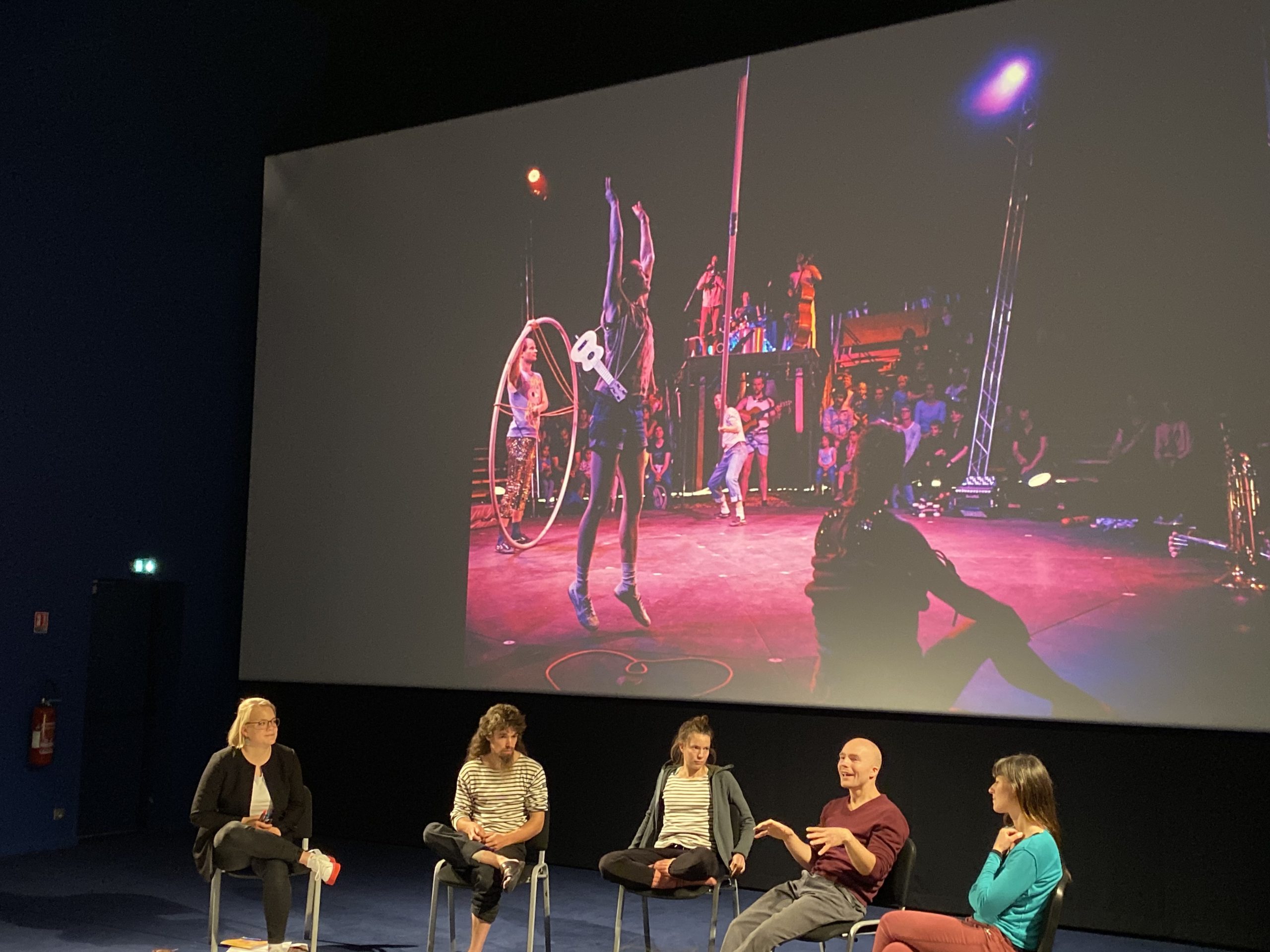 Not only did we have the opportunity to see around 25 shows (we saw our fair share, two or three shows a day–but sadly not all!), we also had the chance to attend artists talks, workshops and plenary sessions–which were always expertly paired with cocktail parties to ease the strain of so much concentration. We even got to enjoy a delicious Gascony meal with new colleagues and to devour much foie gras over the entire visit. There were also after-cirque dance parties for the folks who were able to function on less sleep and who didn’t have a 30-minute hike up a hill to their idyllic farmland Airbnb in the wee hours.