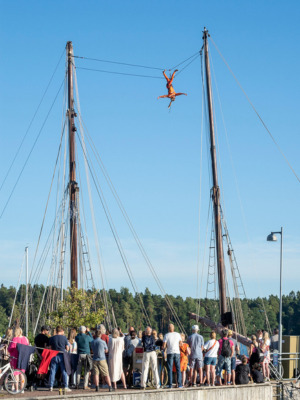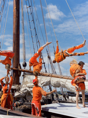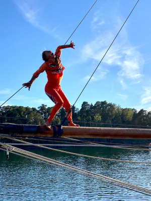 With a main team of five traveling artists onboard our sailing vessel, we stop in harbors around the world where we team up with local artists, environmentalists, activists, and scientists.In this group, we share artistic methods and techniques, explore future sustainable pathways for the territories we are in and those we come from, and create a performance that shakes the souls and drives the audience to action.The performance is site-specific and can be played at different interesting venues, such as a local special landmark, in the outskirts of a forest, a ruin, on the pier, a community square, a local circus place, a theater entry, or a local tallship.