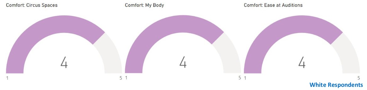 - Respondents to the questionnaire were overwhelmingly white. It is difficult to determine concretely whether this is a reflection of circus makeup in North America in general, or a reflection of respondents reached by the survey (due to social media algorithms and the email lists). That said, judging by abundance of comments, respondents are hungry for education and clear policies that promote inclusion.