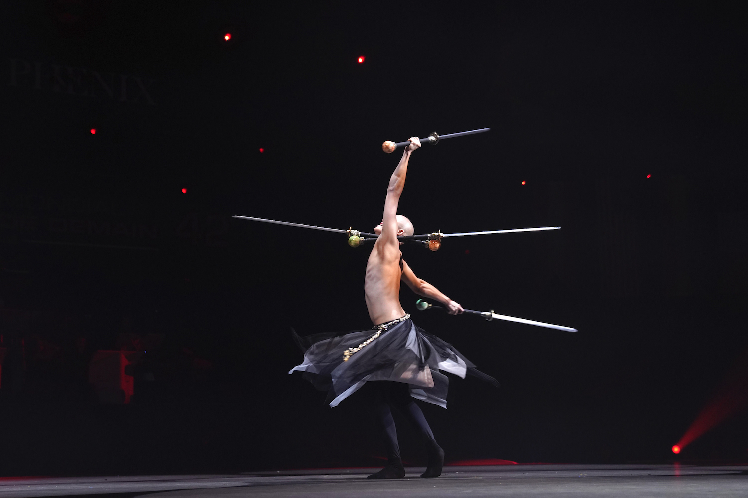 Two more bronze medals were awarded to an unusual variety of specialties: the eccentric tumbling duo Ma Mao (Brazil), formed at the Lido de Toulouse school, whose signature for decades has been always applying unexpected physical comedy to acrobatics; and the surprising sword manipulation act of Titos Tsai (Taiwan).