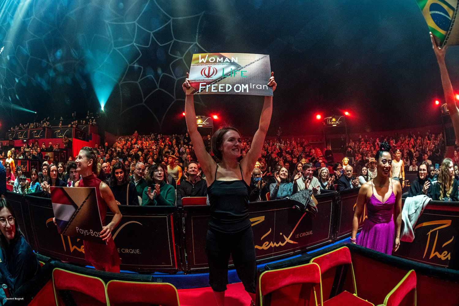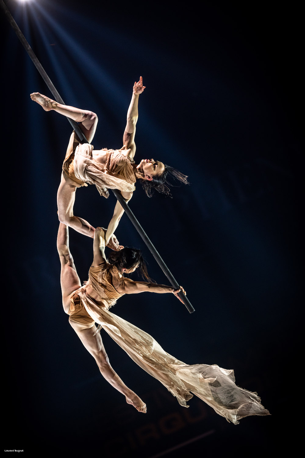 Thepalmarés in some years also includes a Grand Prix above the golds, awarded for outstanding achievement. It went this year to the flying trapeze act of the French company La Tangent du Bras Tendu. If flying trapeze is still lively in the Americas, it is almost disappearing from Europe (with some notable exceptions in Russia or Italy). As a discipline, it is unlikely to be learned outside of circus families and is very demanding for a school program. French contemporary circus, however, developed a side tradition with the success of companies such as the Arts Sauts. This winning troupe is epic, epic in concept, size—a dozen flyers—and technical proportions. The dramatic theme is resistance as opposition to dictatorship (the company’s name, in fact, translates into “the tangent of an outstretched arm,” meaning the mocking gesture called the “bras d’honneur”). If seemingly ambitious, the result is attractive with a light and clear symbolism, performed to a soundtrack not less than Chaplin’s “Great Dictator” or Stravinskij’s “Rite.” The prodigious display of technique evolves into the juxtaposition of a system of aerial cradles over a classic flying trapeze display (as per the seminal technical style that emerged from the North Korea State Circus trapeze troupes in the 1980s). The combination of evocative narrative, classical music, and aerial architecture is not without remembering the legendary “Cranes” from the golden 1980s of Russian modern circus.