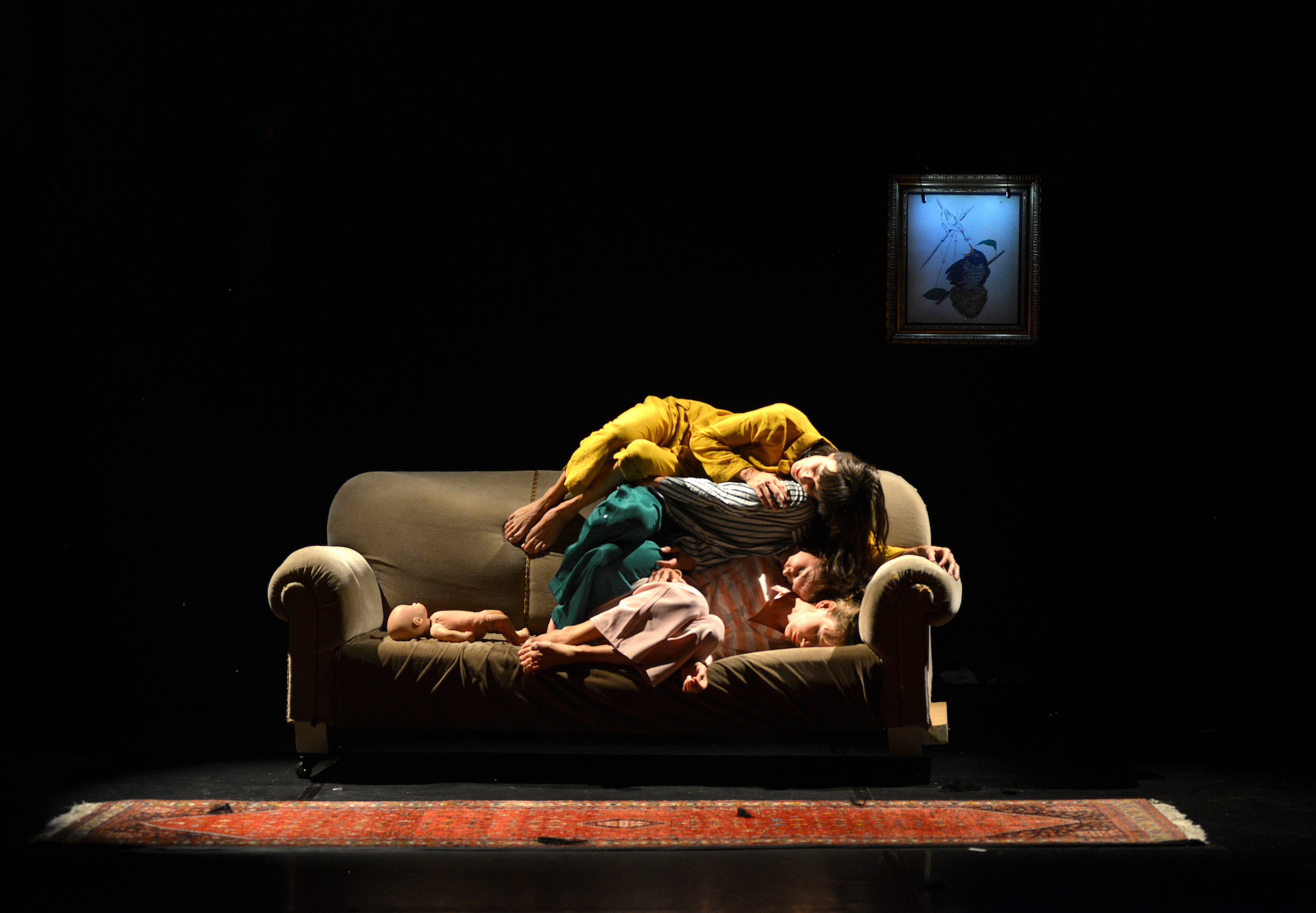 In Germany, an insult that is used to shame women for daring to have a career and children is ‘raven mother’. The three mothers of the show Raven, playing at Assembly Roxy until August 26th, dismantle the misogyny behind this insult, and tenderly reconstruct their world of broken dreams, the surreal exhaustion of long term sleep disruption, motherly adoration, and the dishonorable, frustrated tendency of mother judging mother in the absence of support networks. Using nothing more than a rope, a pile of laundry, their babies, and a projector, Anke Lena and Romy put on a banging, thought-provoking and emotional circus show.