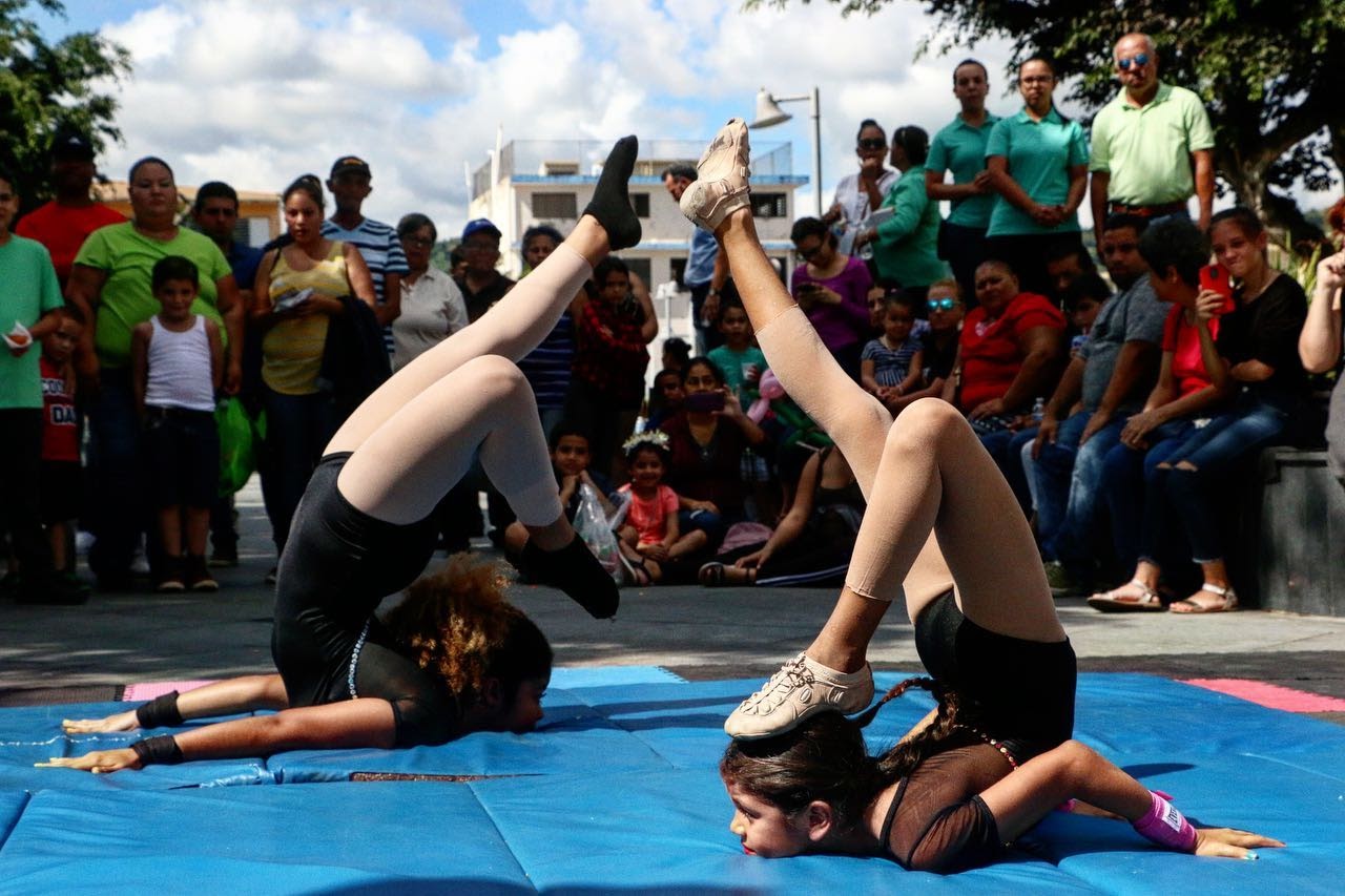 On September 19 – 21 2017, Hurricane Maria devastated Puerto Rico, causing 90 billion dollars in damages and taking the lives of almost three thousand people. Many of the ENCPR students lost their homes. When asked how it affected the National Circus of Puerto Rico, Glorimar responded, “Of course [we helped}… in July of 2018, Jessica Hentoff called and (asked if) we would like to do Peace through Pyramids in Puerto Rico.” Hentoff brought nine Circus Harmony students who combined with ten Puerto Rican Circus performers to create the Revolution for Harmony circus tour. In addition to bringing joy to communities, the troupe also brought food, and medical aid. Also, once the electricity came back on in their circus tent, they performed their free shows.