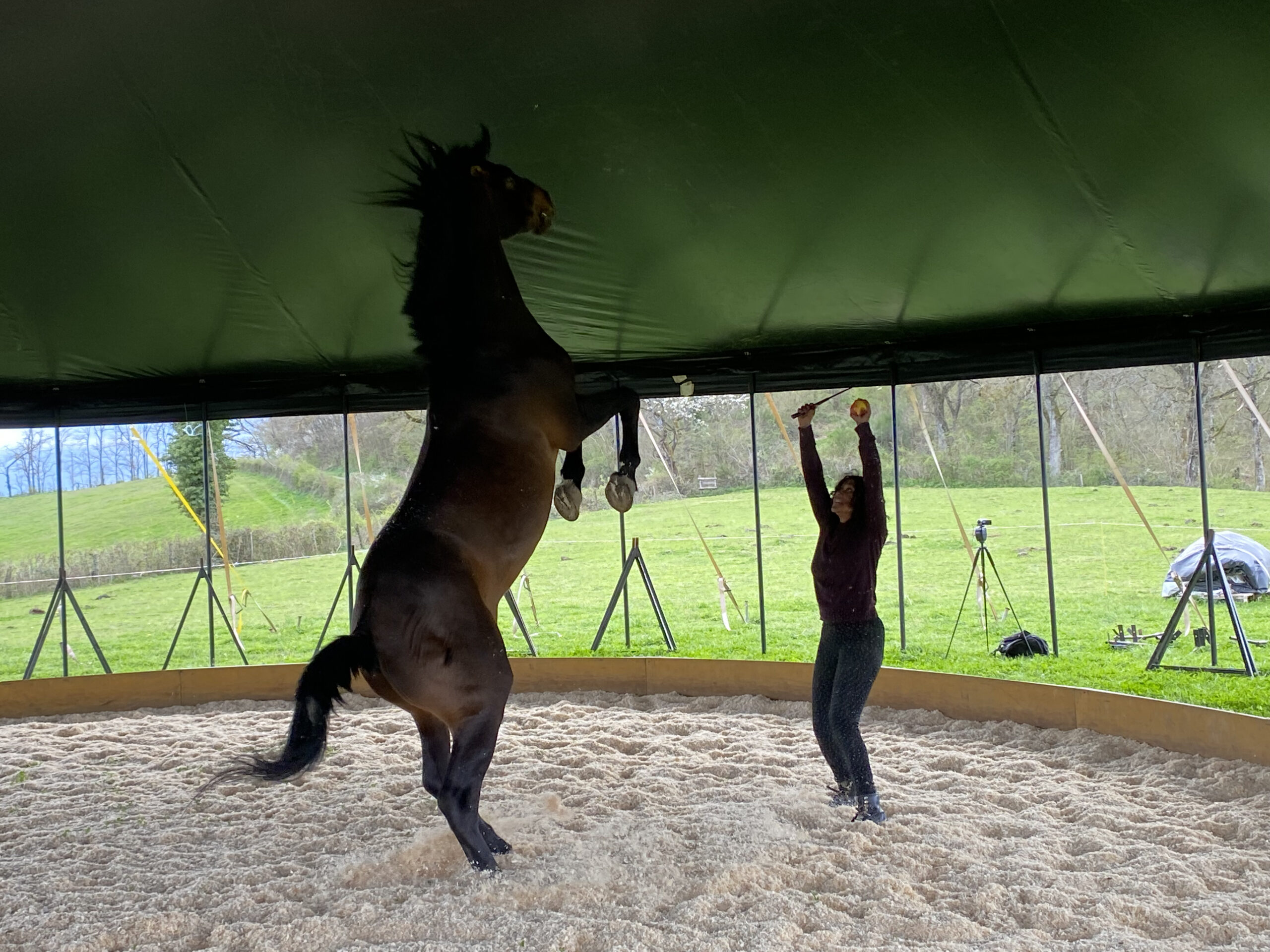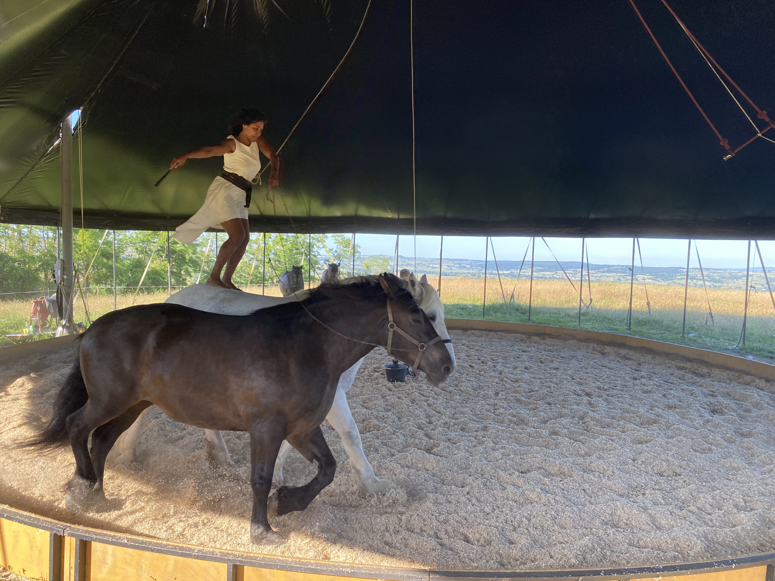 After an intense academic path in 2003, Sabrina devoted herself to her passion: horses. From the world of competition to that of show business, she has sailed and glided with different masters of the work. She founded the Compagnie Equinoctis in 2006 to develop a style of writing that questions social relationships. The company created twenty or so creations over the course of the company’s migrations, and settled in France in 2011. In France, Sabrina is co-founder of “La Bonnette, lieu permaculturel,” whose avowed aim is to bring the living together. This private 40-hectare site of bocage and grove, typical of southern Burgundy, is home to her show company, big top, and 14 horses, 3 dogs and 3 cats, as well as a host of undomesticated living creatures.