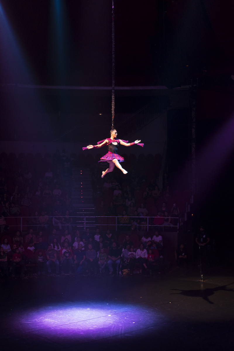 Nerves are on edge. The backstage fills up with the sound of advice, last minute hugs, calls to the family. Some artists go up to the dressing room to finish their make-up, while others keep warming up. The smell of popcorn starts to invade every inch of Teatro Circo Price. The stage, spotless, shows off its best lights, thanks to Cía La Luz. The circular stage with the predominant color of red everywhere moves us, creating the magic atmosphere of a circus. And just like that, after months of preparation, FIRCO, the Festival Iberoamericano de Circo, starts.