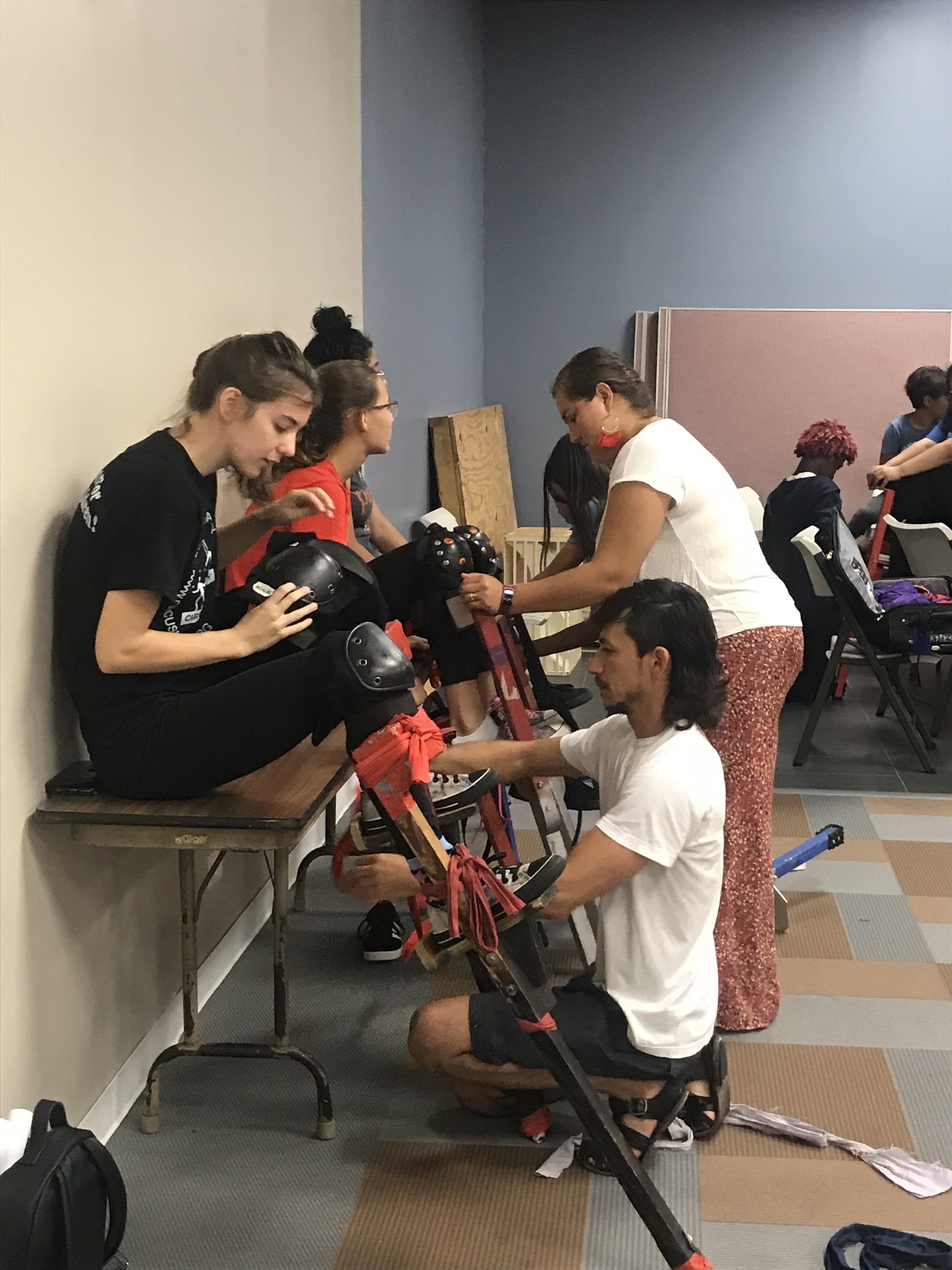 Each social circus group really does do things differently, as they come from different regions of the country and serve different populations. Wise Fool New Mexico for example, has a history steeped in working with puppets as a way to increase civic engagement—often participating in parades and local events. So they taught a puppetry workshop as well as a stilts workshop. CircEsteem has a history of working with students newly immigrated from Africa, and has recently started working with gang populations, so their focus is often intensely based on creating a family environment and a safe space for youth to achieve excellence academically while also building circus skills. Although these differences may seem significant to the coaches and parents involved in the event, one look at the children involved showed the true benefits of social circus for all— a group of kids of all ages, backgrounds and races working seamlessly together to help each other improve their skills and put on a group show in the most organic of ways, child-led, but with a little help from their coaches.
