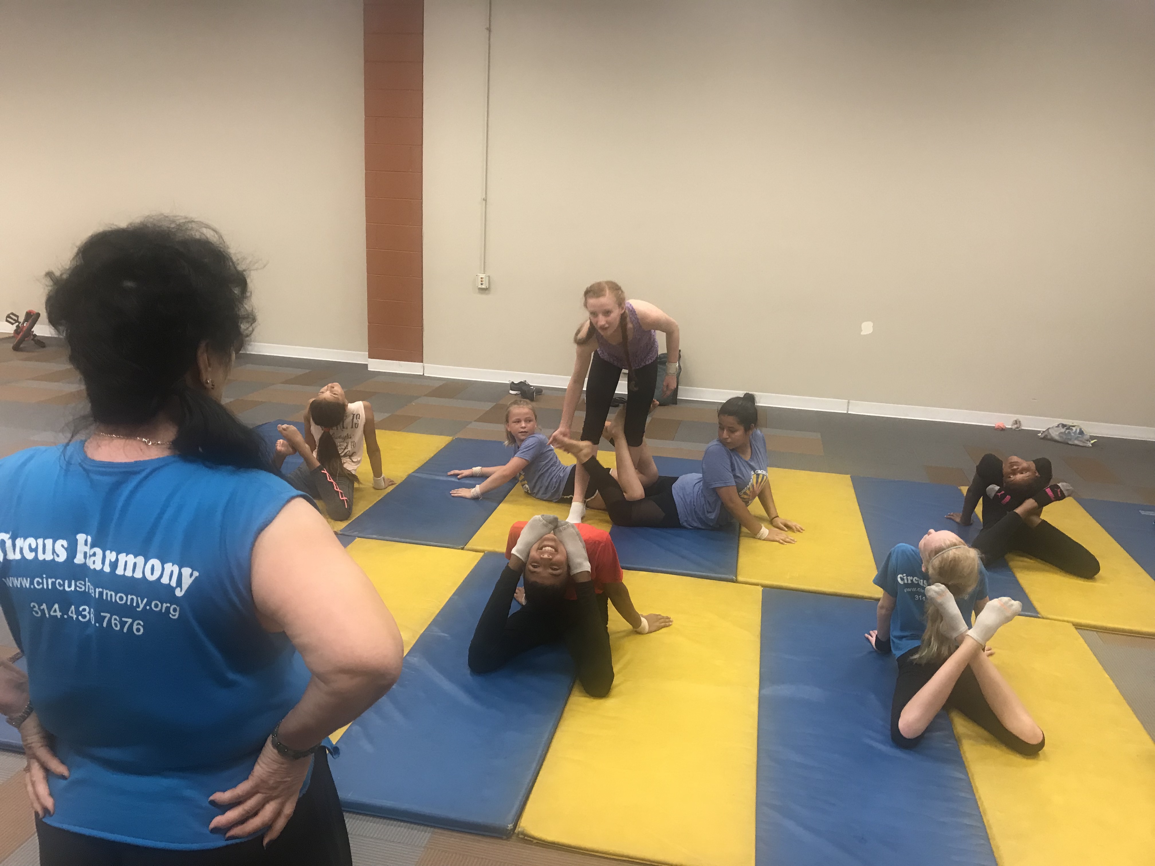 Leah Bailey, mom of two young circus performers in Circus Harmony’s program (Philip 7 & Dennis 11) described how the festival effected her children “The main thing for them has been learning from other kids. They are pretty accustomed the the St. Louis group. My youngest gets a ‘sibling feel’ and shuts down to taking direction from others so coming to this festival means they get to learn things they never learned before from new people. They’ve never put on stilts or did the German Wheel. They get to learn all these new things from new people who are excited about sharing their specialty.”