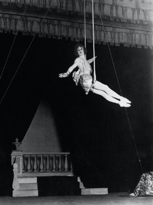 In her essay “Art and Androgyny,” Naomi Ritter compares the writing of two European authors, Jean Cocteau and Thomas Mann, focusing on their views of the circus, particularly aerialists, their gender, and the implications that gender has on art as a whole. Both men muse about the aesthetics and spectatorial effect of aerial performances; however, they come to conflicting conclusions regarding the duality of art. Cocteau, writing in the 1920’s, describes trapeze artist and wire-walker Barbette as god-like: he “transcends both the male and the female in embodying pure sexual beauty.” “Barbette” was the stage name for Vander Clyde, who performed his act in full drag, fooling the audience into believing he was a woman, only to remove his wig after five encores. Cocteau describes the audience’s shock as Barbette “rolls his shoulder, stretches his hands, swells his muscles,” and “plays the part of a man.”