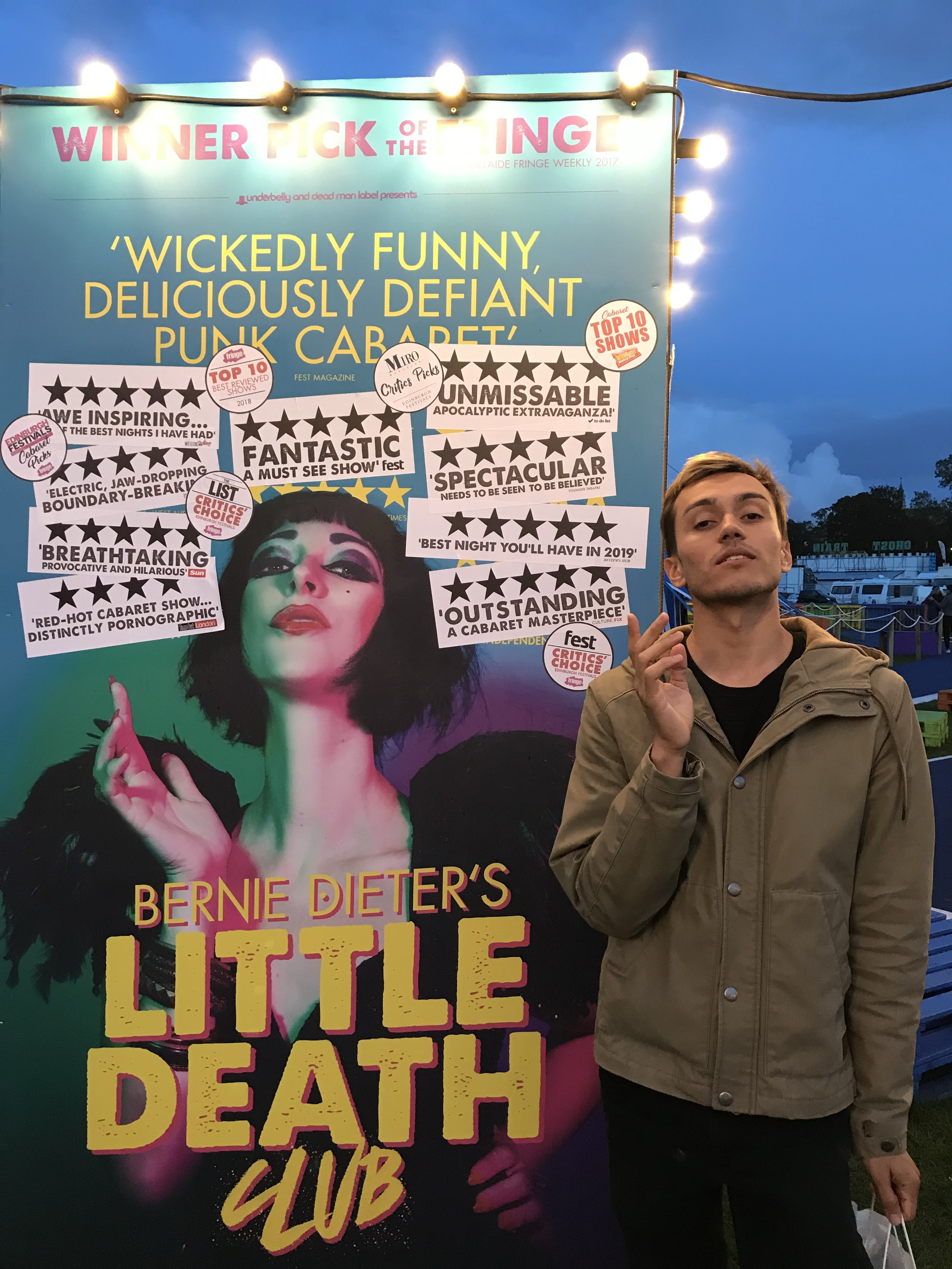 Although it’s not technically possible to see it all, if you have any kind of heart, you will want to. Performers spend a good chunk of their few daylight hours dressed in their costumes, hoofing it around the meadows and Princes Street in order to entice you to come to see their show, and who are you to say no? Word to the wise, if you happen to have a press pass, tuck it away while walking from venue to venue, or else you will experience a strange sensation as flyer-givers slowly enfold you into their masses while chanting their spiel. Have a heart and take their flyer and try to squeeze in just one more show. In one three day haze, I saw seven shows, all while making time for coffee dates, and conducting live interviews for an Instagram takeover before dashing home (to my Airbnb) to write the reviews. Of course, it helped that I planned one of those days to be centered solely around the Underbelly Circus Hub so I only had to step from one tent to another…and to find the food trucks.