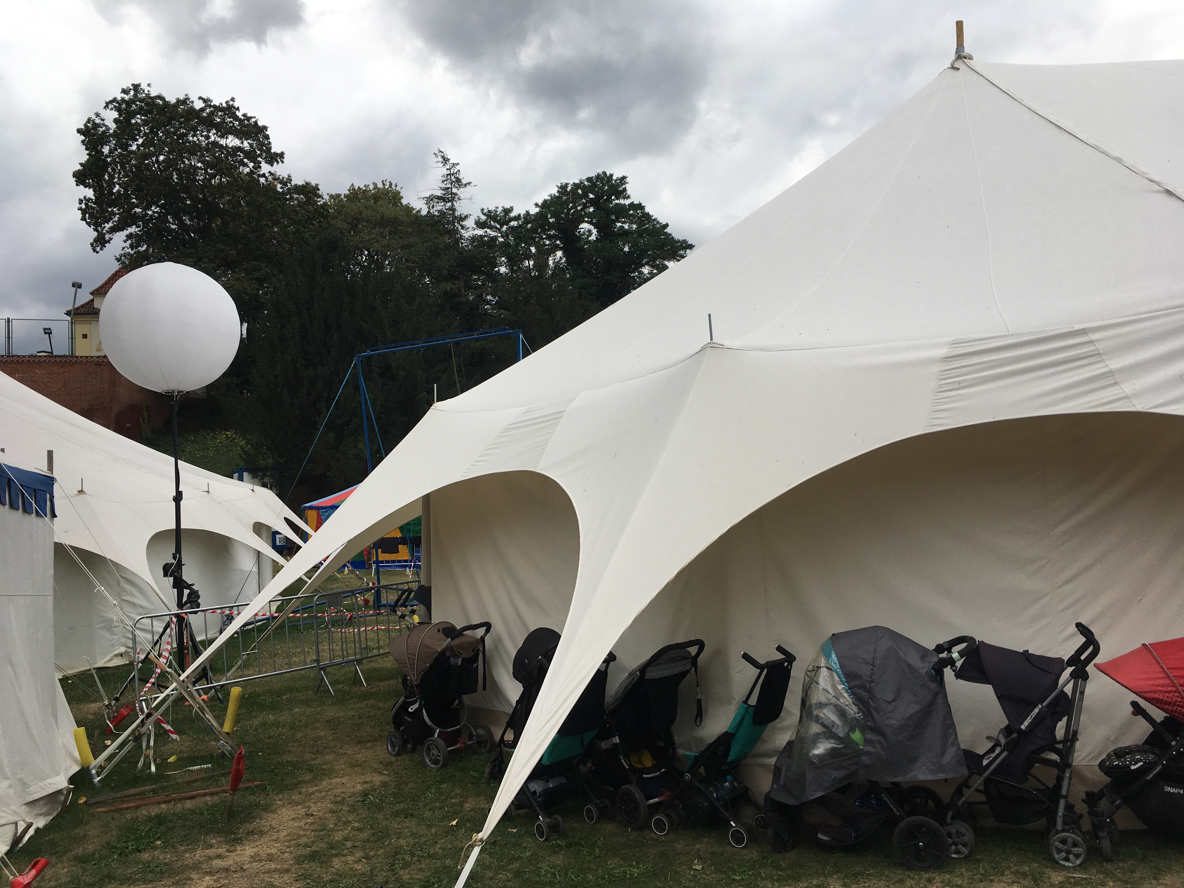 It would be impossible to ignore the setting of the Letní Letná festival and how it contributes to its charm. Prague, capital of the Czech republic, a city steeped in a rich culture of medieval architecture, sculpture, puppetry and the subject of many tourist books, and even more historic volumes. A place where following the myriad of cobblestone roads, atop a hill in the Park of Letna, overlooking the city’s 1000 chapels and spires, leads to a temporary village of circus tents. The Letní Letná contemporary circus festival is a gem amidst the treasures of Prague.