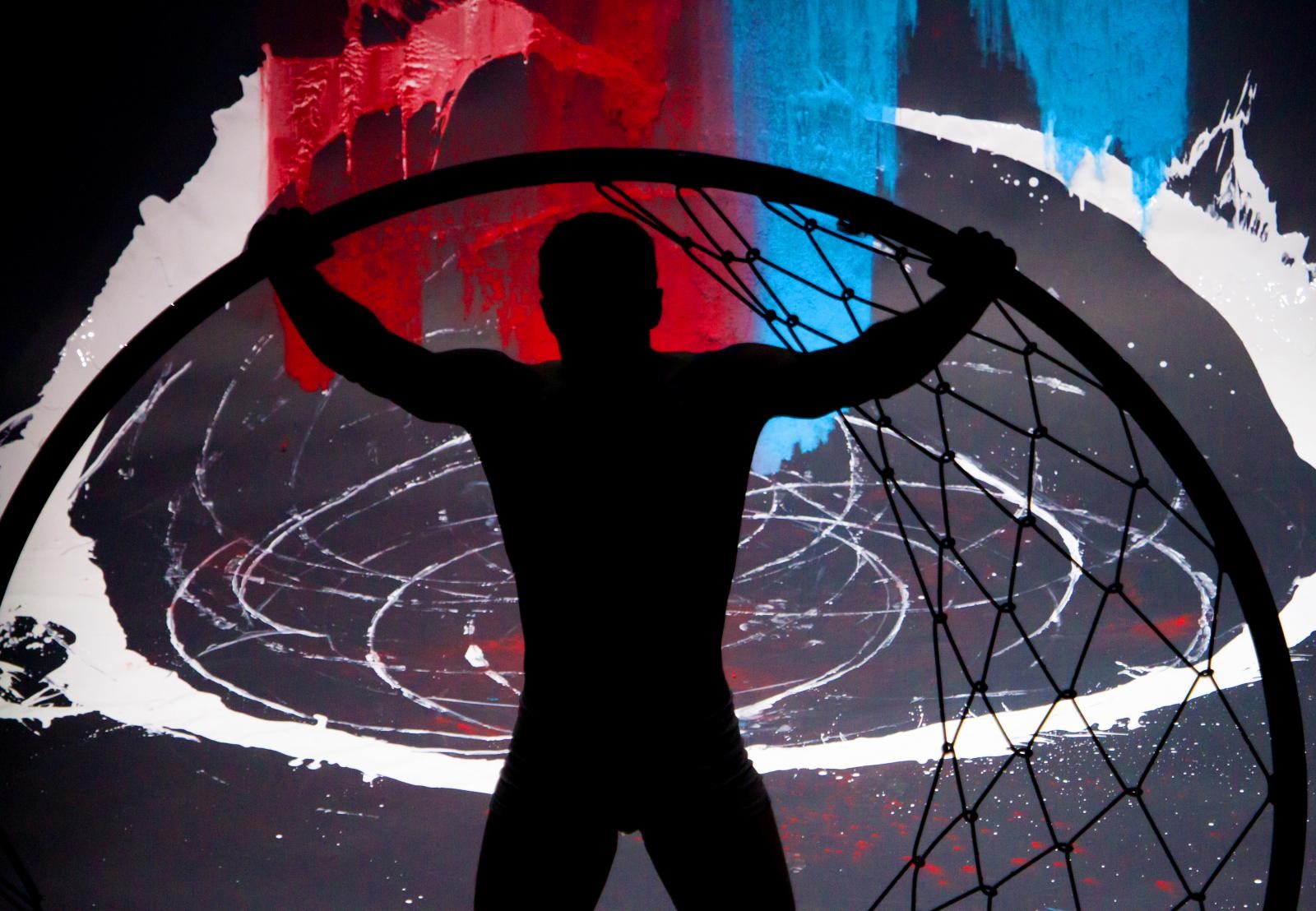 Matthew Richardson from the US ,and straight from his guest appearance at Cirque de Demain, performed the dream catcher wheel number he also performed in Paris. This lyrical and complex piece involved an audio transcript, aerial elements (where the device doubled as a lyra) and ground components (where it was suddenly a cyr wheel) which culminated in a piece of art work being produced. Ambitious, forward-thinking and unique, the tone of the work somehow still also stayed in the neo-classic realm via its presentation.
