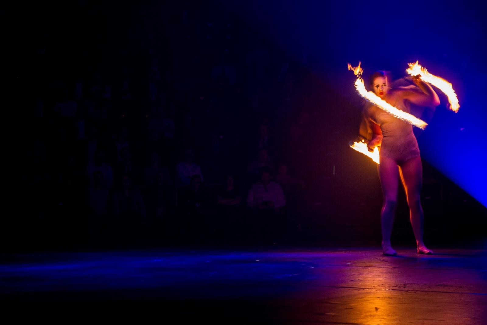 Nicole Heaslewood of England brought fire hoop in to the contemporary performance realm with a pensive and entrancing act that blended the flow of hoop with classic dance presentation.