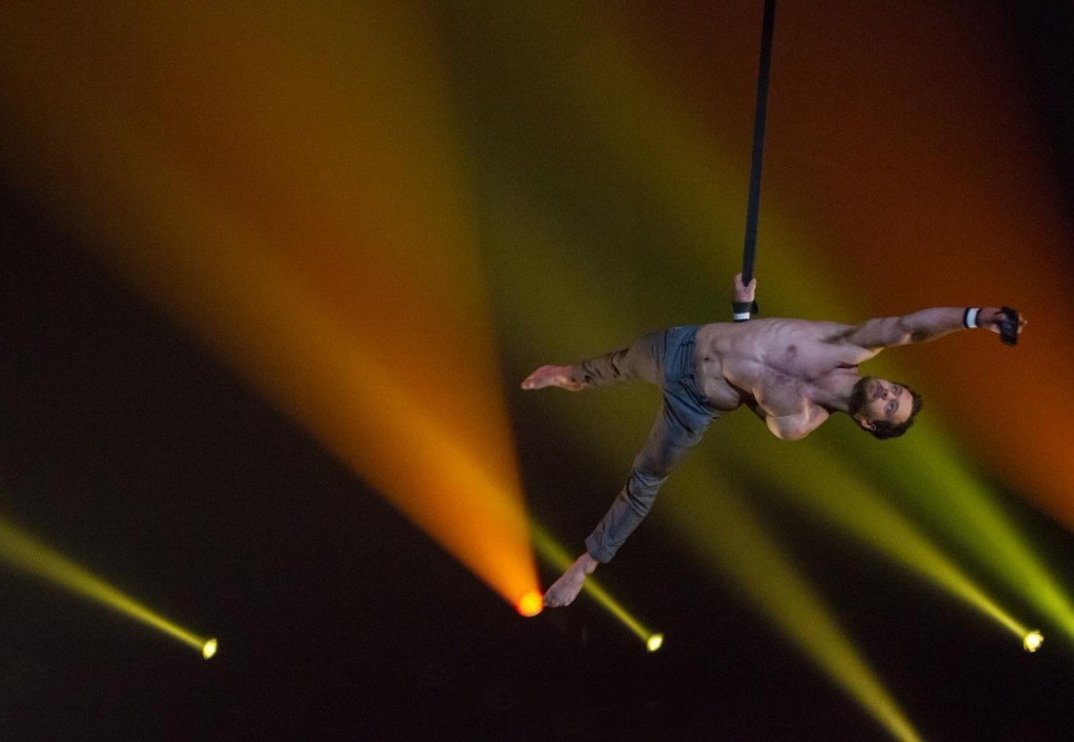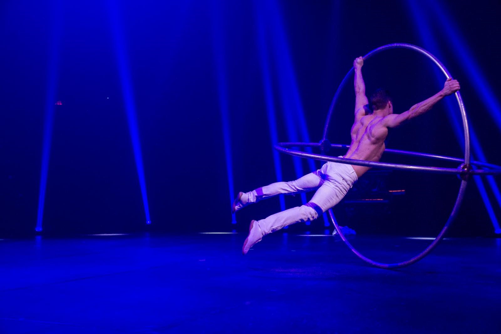 Marie-Eve Bisson of Quebec and Cirque du Soleil on aerial hoop showed a masterful interpretation of the spinning single point lyra, claiming the stage and the air with her dance and contortion moves on the device.