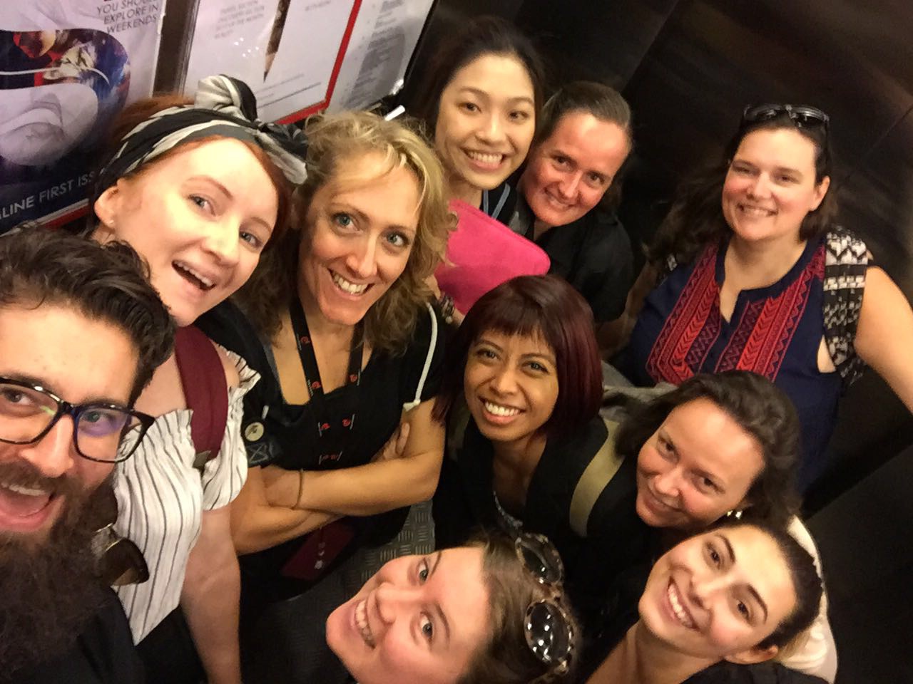 Rebecca Lockyer (Rex) was my Senior Stage Manager, when I was the General Stage Manager of The House of Dancing Water. I remember back in 2012, us looking at each other in my office one day and thinking “OH SHIT” as we both realized that we were pregnant at the same time. The picture you see here is us in our “Pregnancy Mumuus” with the rest of our SM team. The pregnancy mumuu was a show tradition before maternity leave, where any pregnant staff member was required to wear the pregnancy mumuu for an entire day.