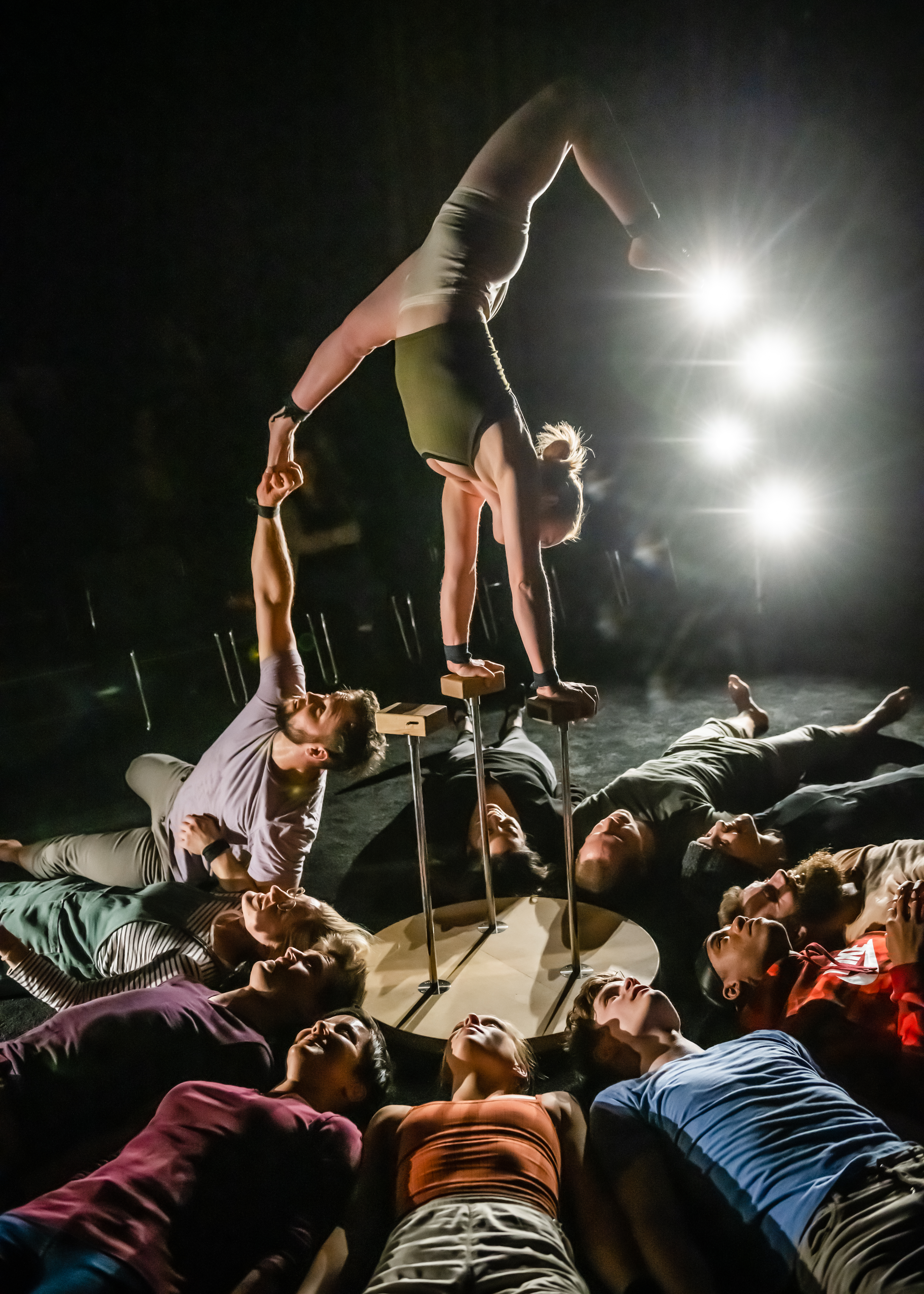 There was some confusion and criticism amongst local circus audiences though, who thought that saying the tag “cirque danse” as new toNon Solus was confusing since other shows often employ circus and dance together in various ways. Vági agreed, “There are many performances right now that are moving towards ideas of dance theatre. You look at the work of Circa, an Australian company, [Opus]- it’s moving towards dance theatre, but differently [from Non Solus]: the form is like dance theatre, the lighting, the music, the structure, but the rawness of the circus artists remains- which Ilove… Whereas we take the lines of ballet theatre where it’s really precise. All of these angles we have learned, the artists they know the positions, the squares, the stretch… I wouldn’t say that it is classical ballet, but when you look at it, it feels like ballet in a way because it’s put into a system (that maybe exists in my head), and that’s why it becomes different.”