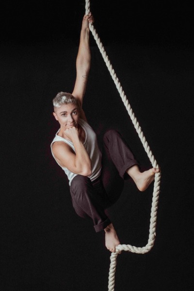 Zed, a circus artist with a PhD in art sciences, is a coach, speaker, and author. On the one hand, they have followed a scientific and academic trajectory around the issues of arts, culture, identity, gender, and transfeminism that has given rise to numerous publications about clowning. On the other hand, they have pursued a self-taught artistic path that allows him to work all over the world. In 2020, they participated in the 41st Festival Mondial du Cirque de Demain where they won the two prestigious prizes: “Prix spécial du jury” and “Coup de coeur du festival” with their act of flying pole.