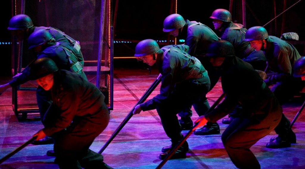 This coming together of multiple cultures is perhaps best highlighted in a profoundly moving moment for many of us in both the process and the production. Devised through a collaborative musical creation exchange, the artists and creative teams of both countries wove together the traditional Korean song “Arirang” [7] and a nehiyawak (Cree) song shared with us by nehiyaw Knowledge Keeper and Cultural Consultant Joseph Naytowhow “Mother Earth Song (okâwîmâw askiy)” [8].