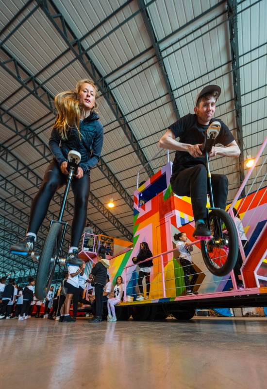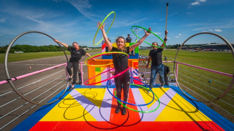 From DJ Milktray getting a big wave from the royal family to the sight of Andrew Gregory flying through the air and our bmxers jumping and backflipping in front of Buckingham Palace, there were so many memorable moments. There is now an amazing Tramp Wall team based in the UK… there wasn’t one before! Some hair-raising moments, too, like tight tunnels on the float’s route into London, low-hanging trees engulfing the trampolinists and sections of sand on the route causing difficulty to our wheelchair users. But most of all we will remember the dedication, commitment and motivation of our team of outstanding artists, who worked their socks off to achieve something truly extraordinary. You know who you are. Thank you.