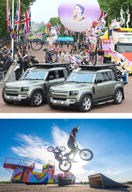 Our performance for the Jubilee Pageant included around 90 young dancers, the youngest aged 5… it included community wheelchair basketballers, professional mountainbike and bmx athletes, trampolinists, circus artists, unicyclists, bouncy stilts, aerialists, breakdance and the drivers, vehicles, technical and production teams to pull this all off.