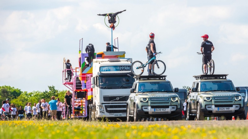 We wanted to include as much movement as possible in the performance as well as showcasing a diverse array of skills. The bicycle team, headed up by 5 x UK and European trials mountainbike champion Danny Butler, included platforms fixed to the back of 2 JLR Defenders, as well as 2 professional bmx riders performing stunts on ramps ahead of the float. Two unicyclists moved up and down the space, bunnyhopping and balancing together. We were delighted to connect with Sparrows Wheelchair Basketball club from Hackney, who brought 8 basketballers to join us in our parade.