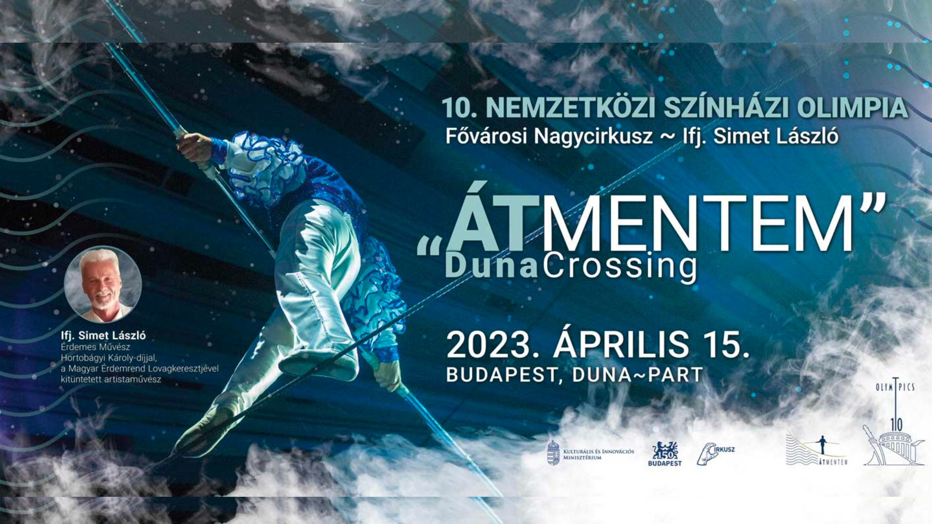 As part of the 10th International Theater Olympics, which runs from April 15 to June 24 in Budapest, Hungary, the multi-award-winning high-wire artist László Simet Jr. will cross the Danube on a high-wire as part of the Hungarian National Circus Arts Center’s ÁTMENTEM (in English: I’VE CROSSED) project.