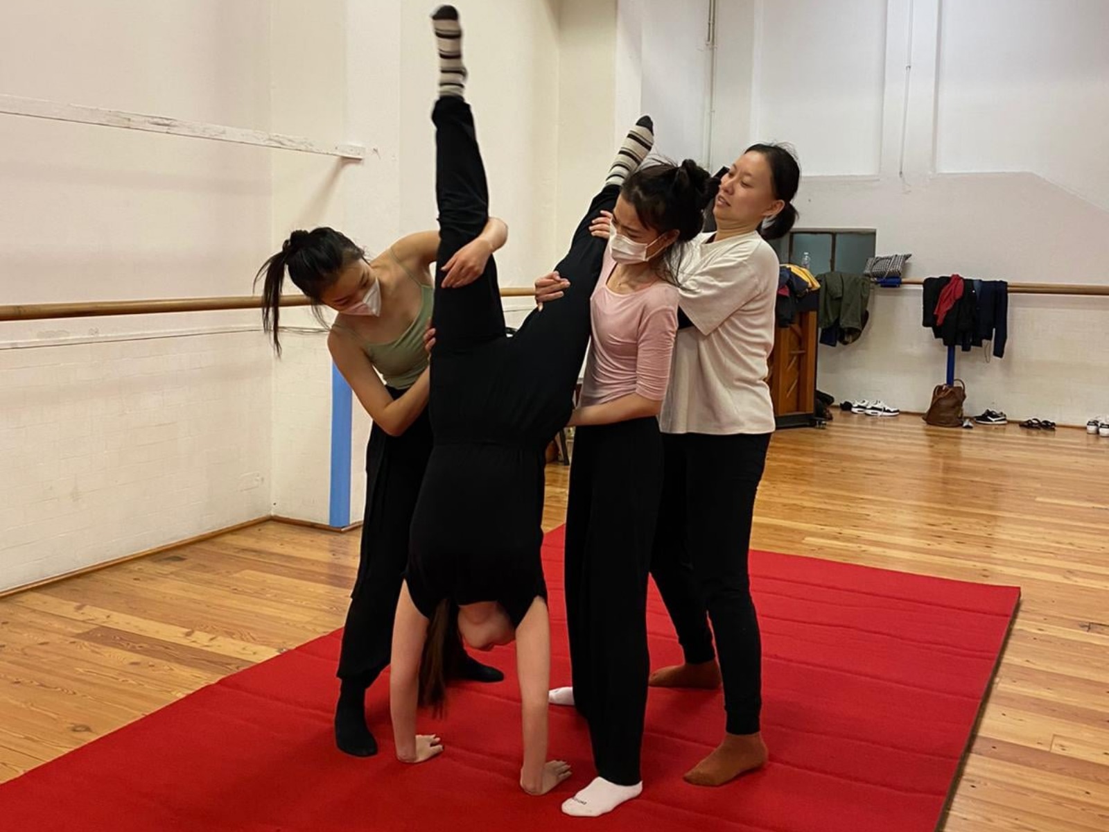 A Circus training workshop implemented by The Palestinian Circus School for 17 dancers from different nationalities at the National Dance Academy in Rome – “Italy Accademia Nazionale di Danza”. This workshop is part of an exchange project between the Palestine Circus School and the National Dance Academy in Rome, in partnership with Faculty of Art, Music and Design at Birzeit University and Sareyyet Ramallah. The workshop aims to develop the capacities of the dancers by training them on various circus disciplines: Acrobatics, Acro lifting, acro-dance, pyramids and physical preparation exercises. In addition to group work exercises that focus on trust and concentration.