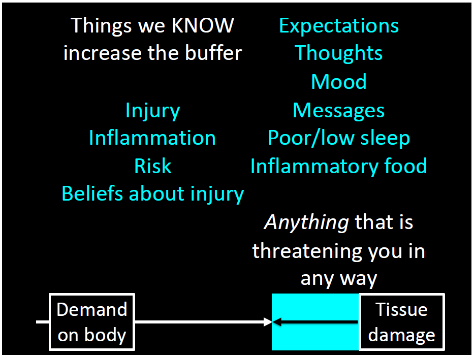 Correct! It’s highly likely that contributors to pain may vary from day to day, and potentially from moment to moment. We are so-called ‘bioplastic creatures’. There are factors that both increase and decrease our pain experience.