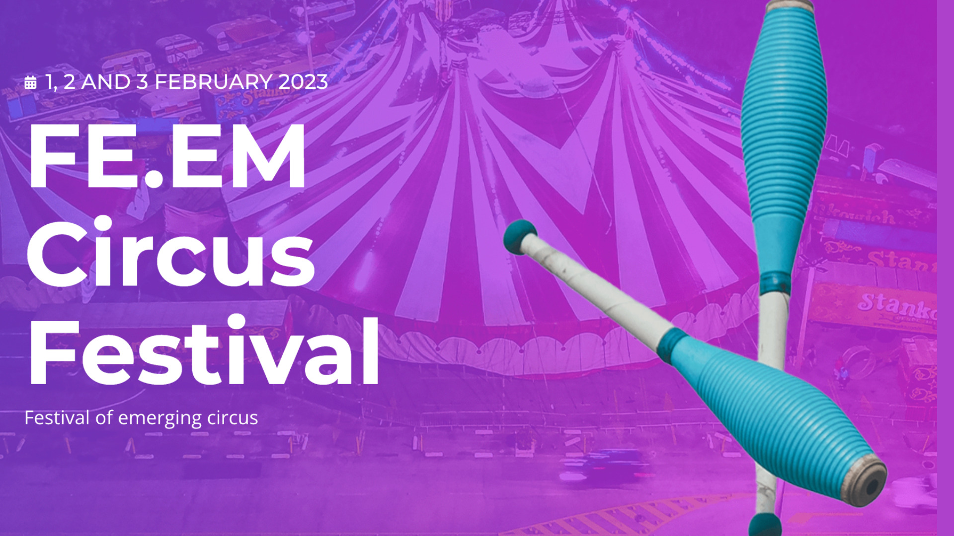 We are pleased to invite you to the premiere of the FE.EM online emerging circus Festival, happening on February 1, 2, and 3. The premiere will take place on February 1 at 19:00 Central European Standard Time (CEST). The shows scheduled every day can be visualised from 19:00 CEST and during the days of the festival.