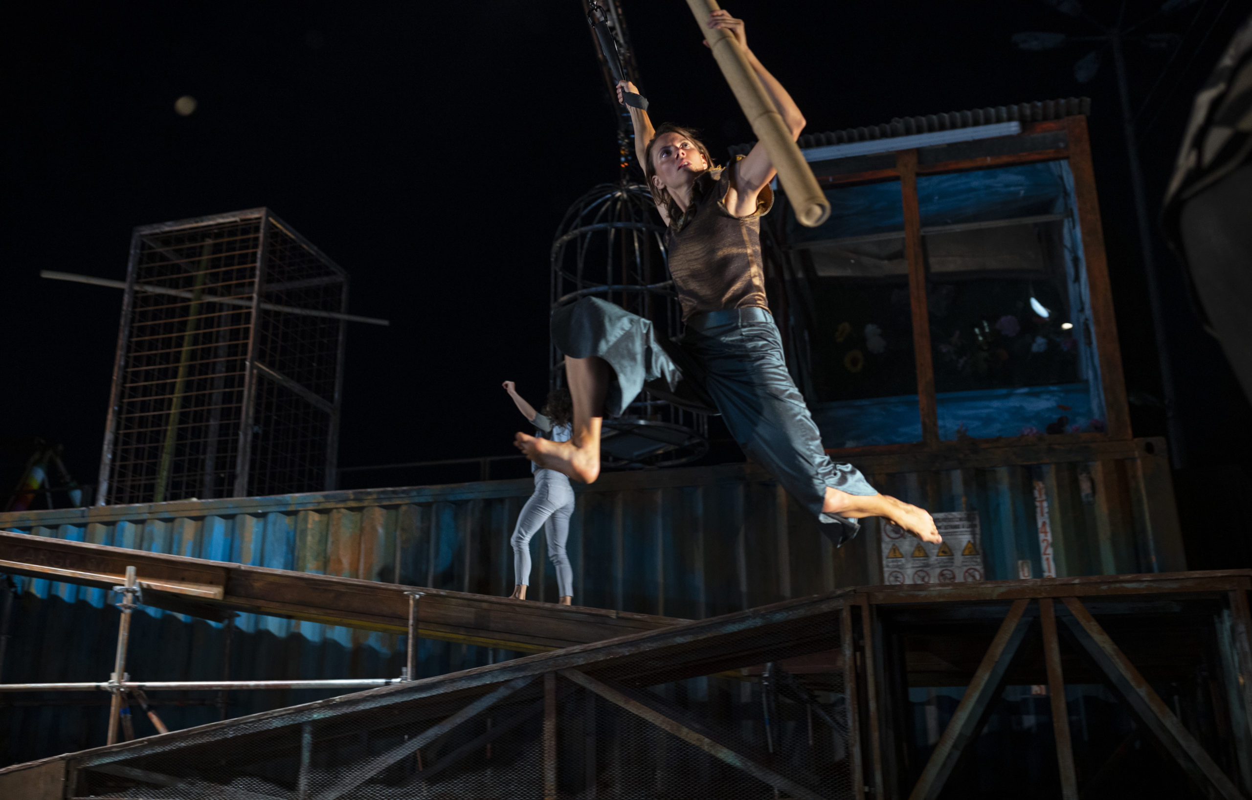 Of course, circus has a key role in this dehumanizing scenario. “Circus is the playful element that reminds us to stay human and creates an ironic gap among the elements at play,” says Giulio Lanfranco, one of the leading artists and founders of MagdaCLan. “It shows us a happy and carefree world which is the counterweight to the harsh issue of climatic migrations.”