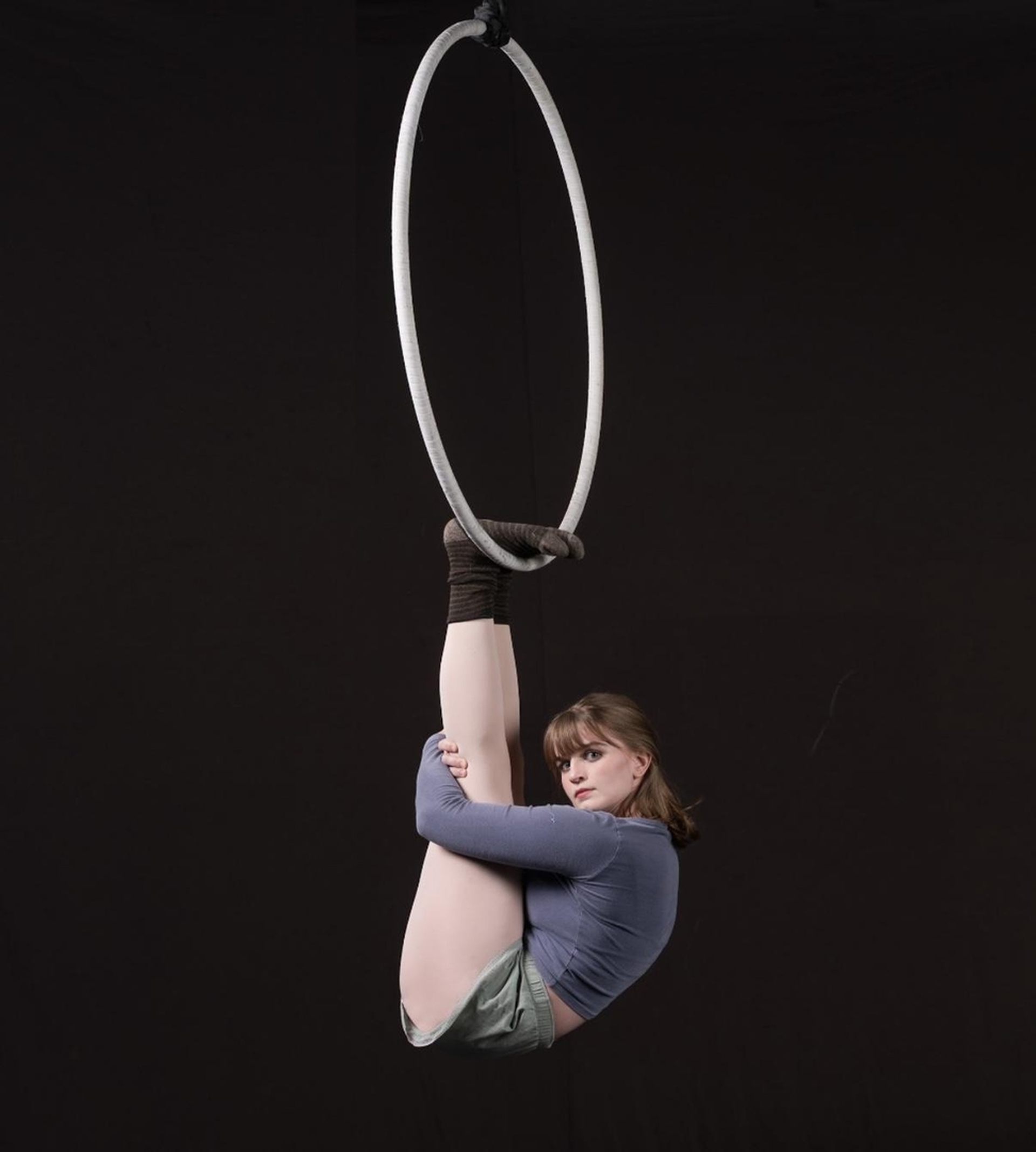 Adelle Gertsch is an aerialist specializing in dance trapeze and lyra/hoop with a circus generalist background. Her personal style is identified by her inventive transitions, dynamic skills, and captivating characters that prioritize the relationships formed with the audiences. Originally based in St. Louis, she began her circus journey at Circus Harmony. She further honed her skills in full-time programs at the San Diego Circus Center and Aloft Circus Arts. She has performed, choreographed, and coached throughout the U.S. and enjoys collaborating with other creative minds.