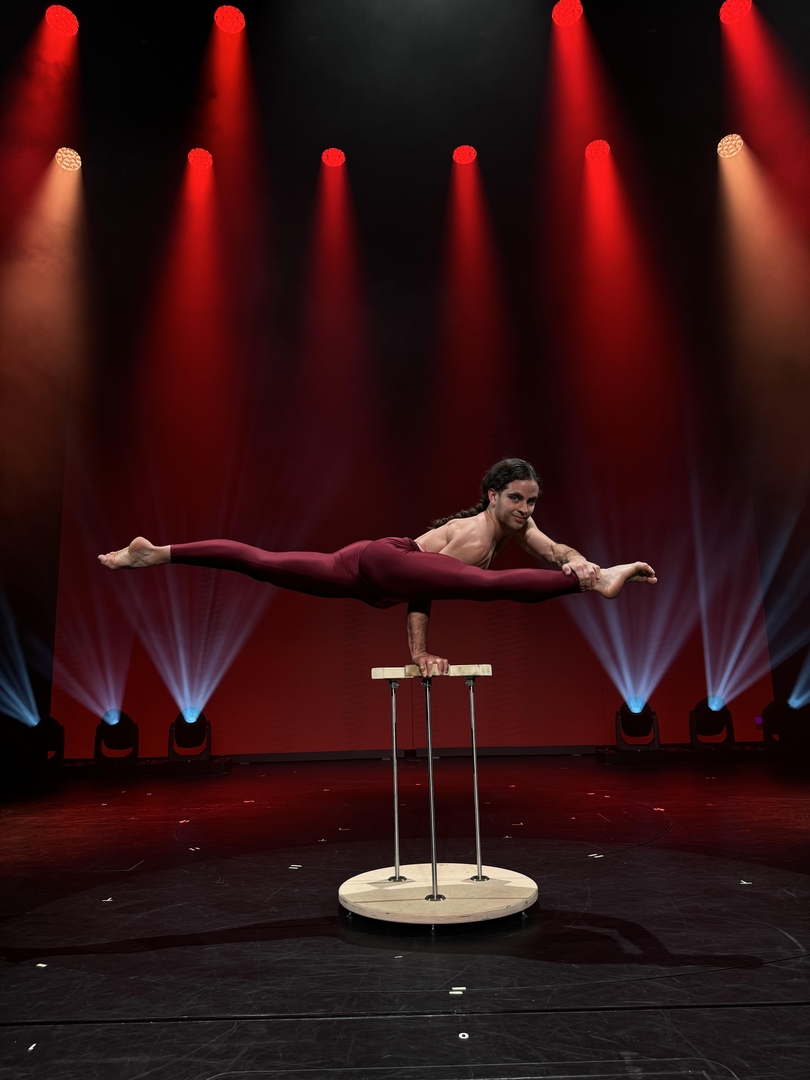 My name is Agustín Berstein Pizarro, I’m 31 years old, and I’m a multidisciplinary artist from Santiago, Chile. I have had the fortune of coming across many fields and genres throughout my life, including law! This road has led me to becoming specialized in contortion, with a strong background in dance, having the ability to dance on pointe, an uncommon asset for a male dancer. I have also trained in hand-balancing, hula hoop manipulation, aerial hoop, and most recently, pole dance. These skills altogether give me a unique profile which I’m sure will open an ample spectrum of possibilities to explore on your stage. The combinations are endless, and I invite you to discover them with me! I have a strong passion for what I do, and I am disciplined person (I thank my ballet years for that).