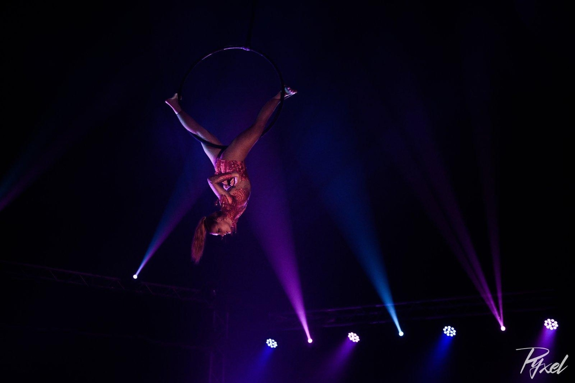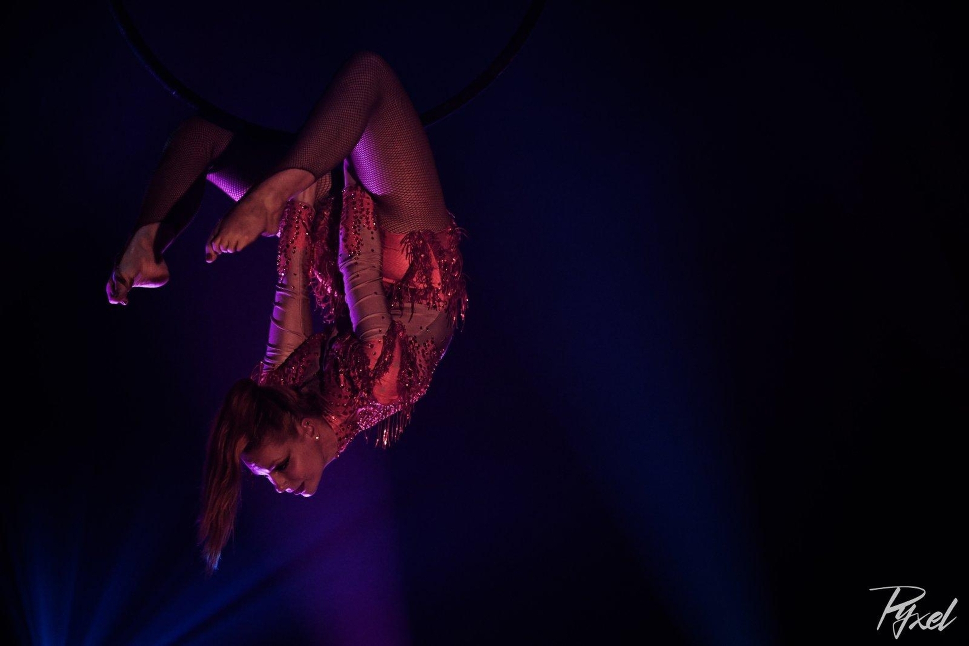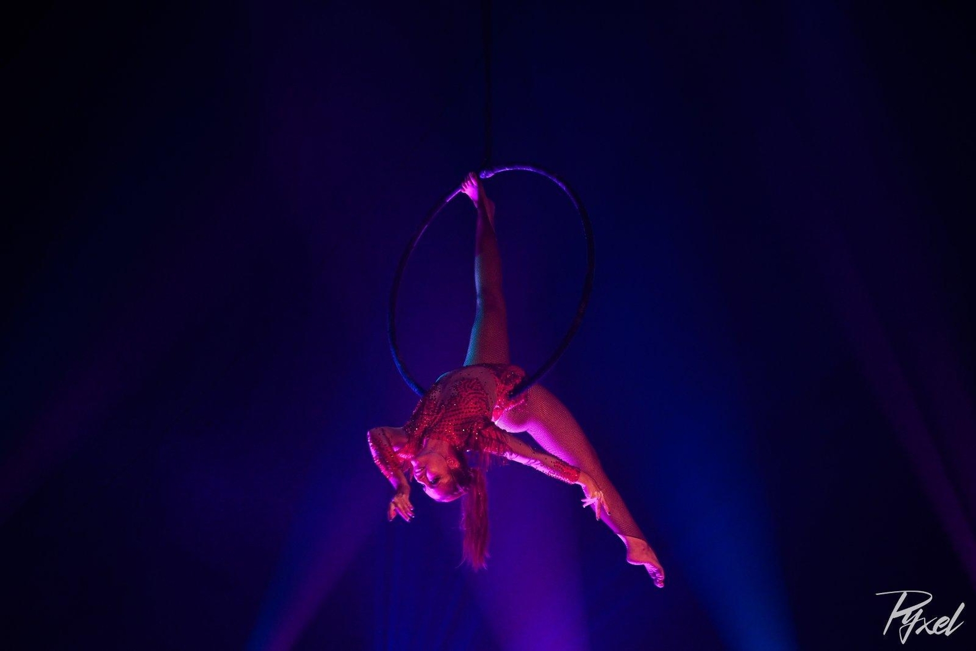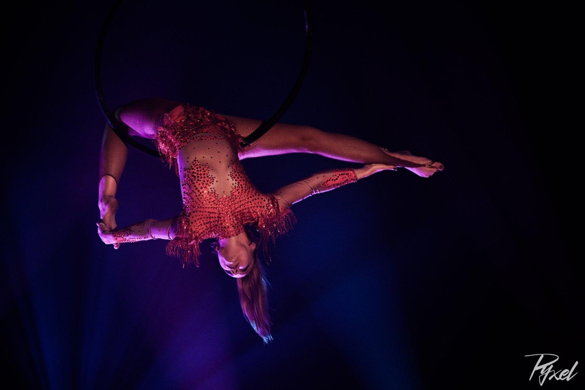I am an aerialist, working mainly on lyra and dance trapeze. I have performed both duo and solo acts.