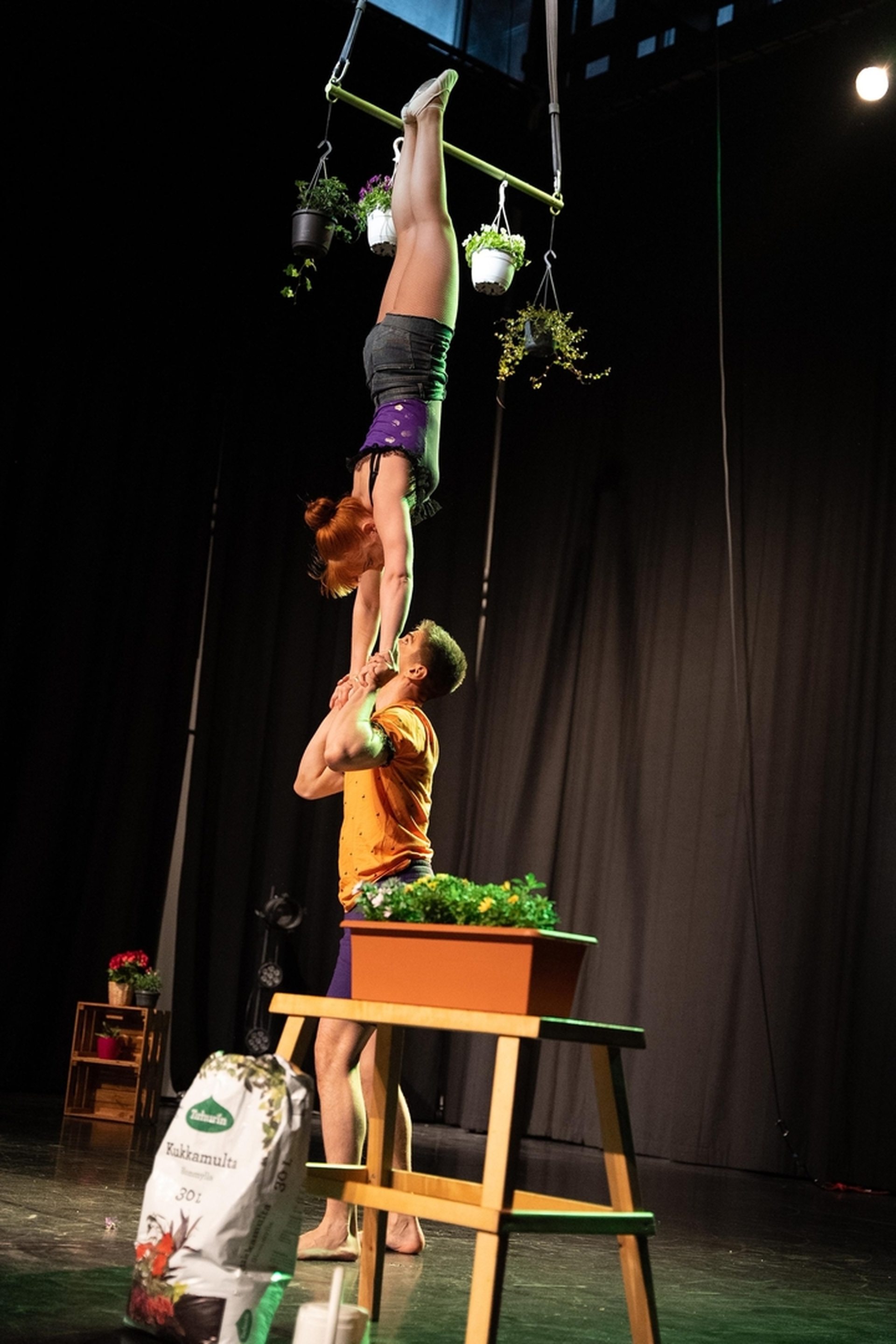 We are Totti and Rhea and together we are performing as Duo Baer. We are an acrobatic couple from Finland and our main disciplines are Hand to hand adagio & Lollipop lyra duo. We graduated circus school in february 2024.