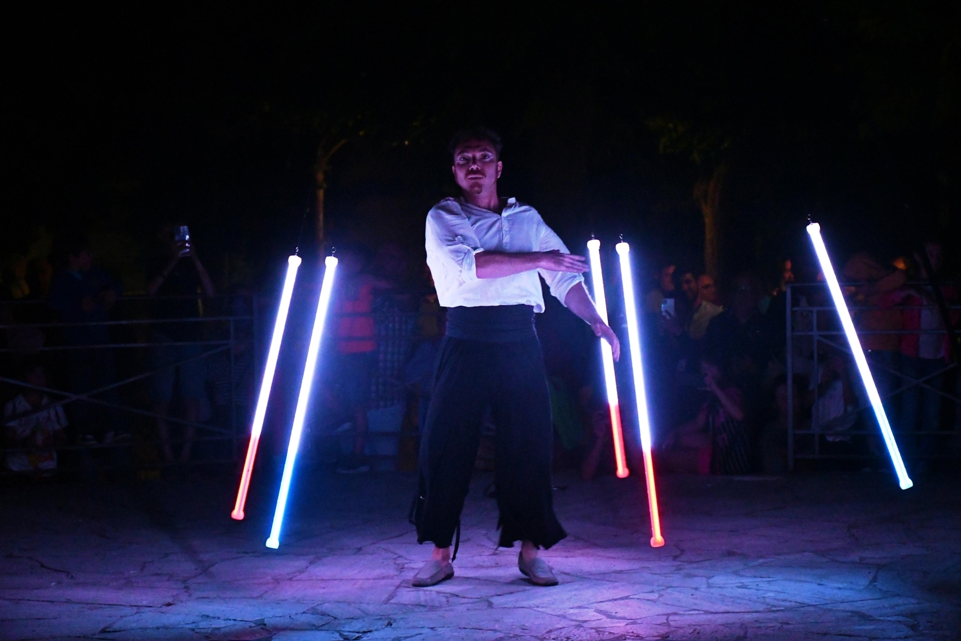 Giulio Linguiti is a circus performer, street artist, actor, and trainer. Active since 2010, he has brought his work to theaters, streets, and festivals across Italy and abroad. A graduate of the Atelier Teatro Fisico Philip Radice (2020), he later joined its resident company as actor and production manager, while also teaching at the Lecce branch. In 2024, he created Lightflies (Molotov Entertainment), reintroducing horizontal juggling to the Italian scene. He has trained with renowned artists including Philip Radice, Jef Johnson, Avner Eisenberg, Yoshiko Sienkiewicz, and Eugenio Allegri. Today, Giulio continues to develop his artistic journey, performing and leading workshops internationally.