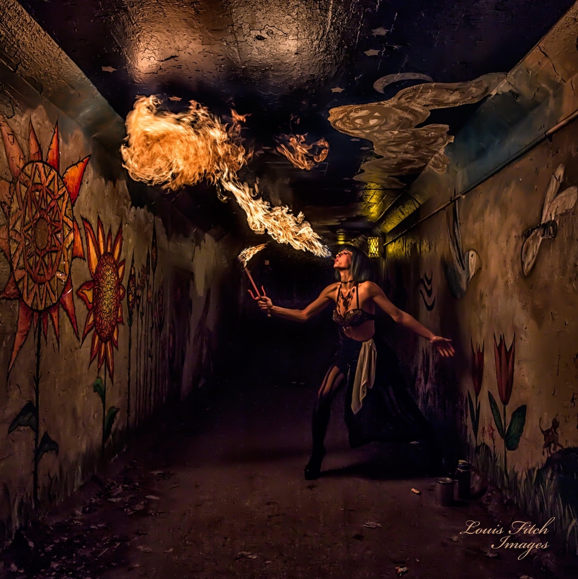 Based in Chicago, Sally is an internationally performing sideshow artist specializing in sword swallowing, fire performances, and pain proof acts. Notable appearances include Hansa Theatersall (Hamburg), Universal Studios Halloween Horror Nights (Singapore), Circus Journey Productions (Canada), and touring with Hellzapoppin Circus Sideshow Revue.