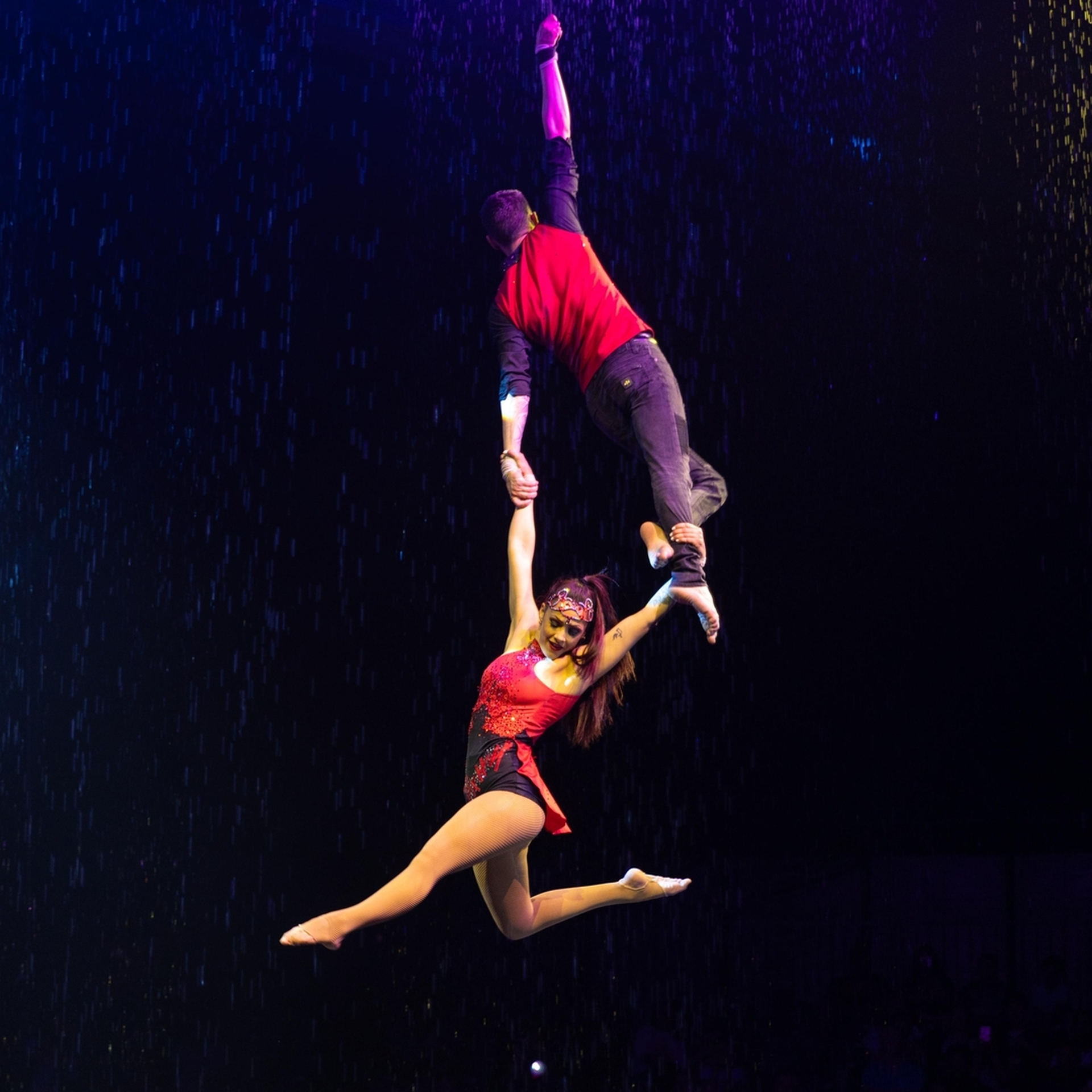 Las Vegas-based aerial artist with over 10 years of international experience performing across Europe and the United States. Specialized in aerial straps (duo) and solo trapeze (Skywalk), with strong adaptability to water-stage and technically demanding environments.